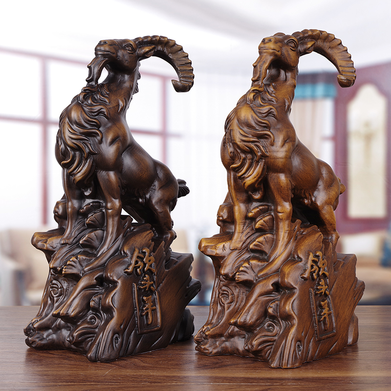 Wood Carving Zodiac Sheep Pendulum Pieces Property Solid Wood Collar Heads Sheep Home Living Room Furnishing Giver Gift Office Decorations