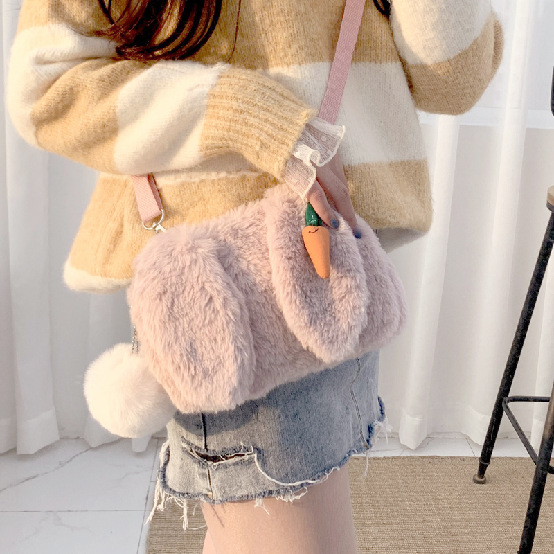 2022 new Japanese girl heart cute cartoon rabbit plush bag female fashion all-match messenger bag shoulder bag