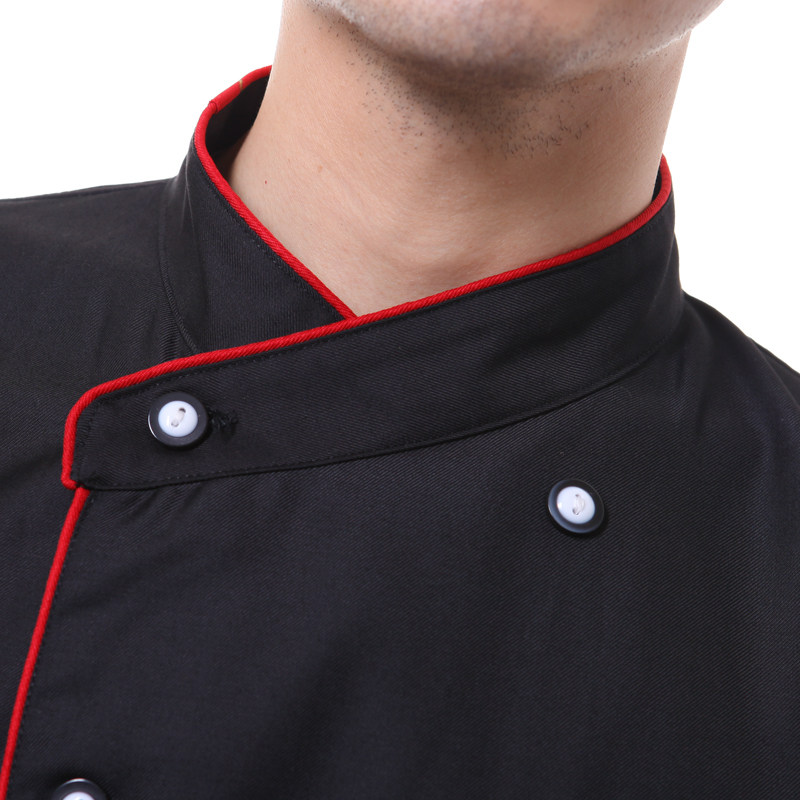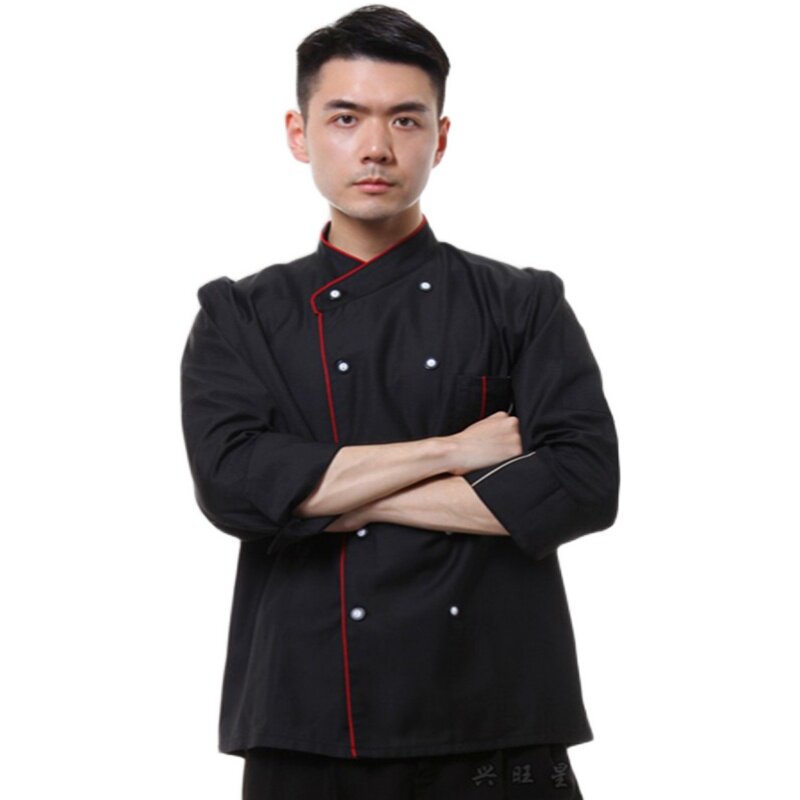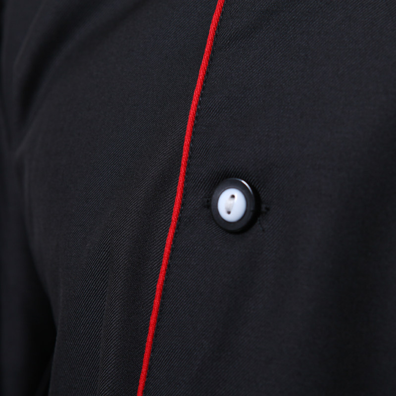 Hotel Workwear Black Catering Canteen Chefs Serving Long Sleeves Red Side Horseshoe Sleeve Winter workwear black and white buckle