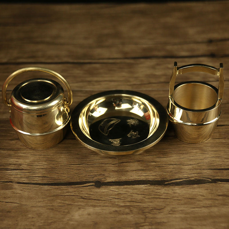 Pure copper dowry children and grandchildren barrel three-piece set wedding celebration supplies festive small toilet ornaments housewarming used for marriage
