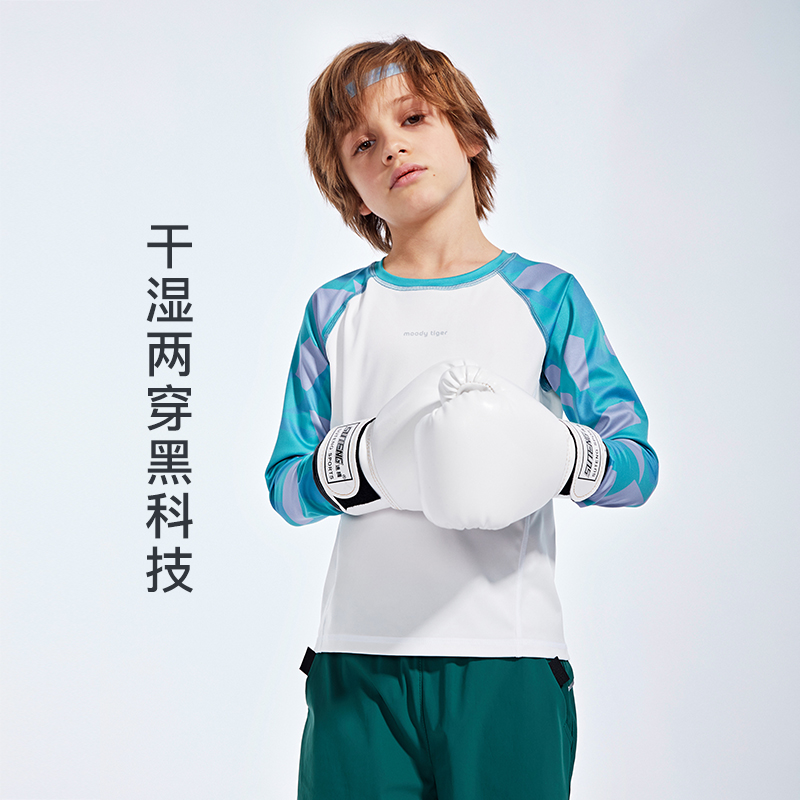 moodytiger Boys Girls long sleeve T-shirt 2021 autumn new children shoulder sleeve sports base shirt