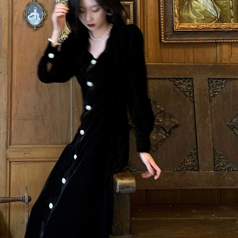 Inner base French beautiful chic unique gold velvet dress early autumn early autumn 2022 new autumn and winter