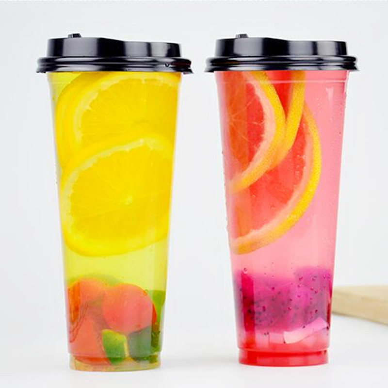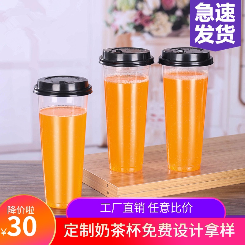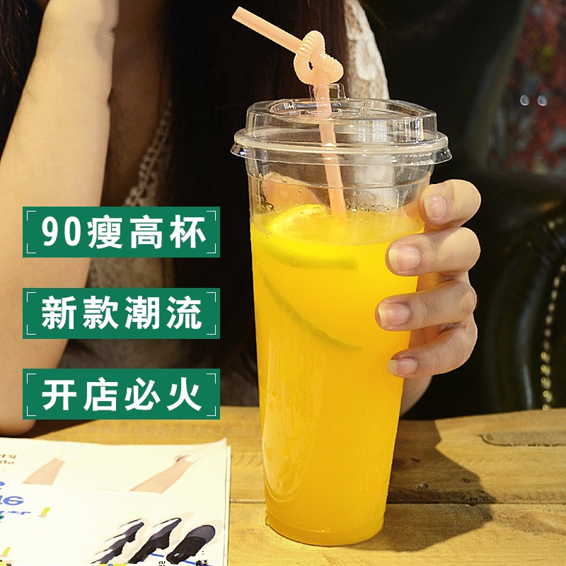 90 Mouth Transparent Plastic Cold Drinks Juice Cups Disposable Cups With Lid Milk Tea Cups Coffee Drinks Packaging Cups Commercial