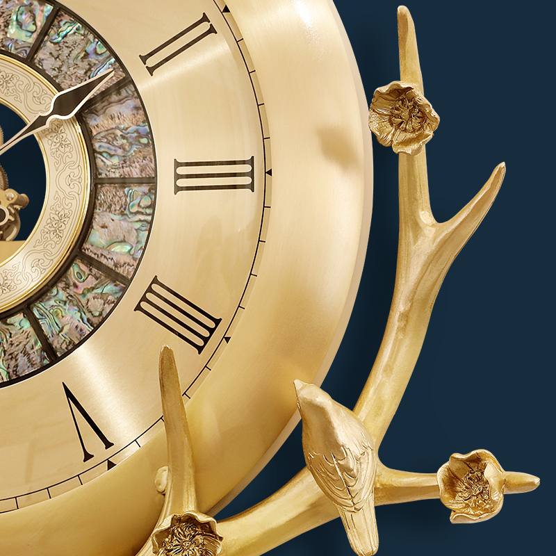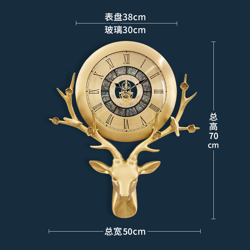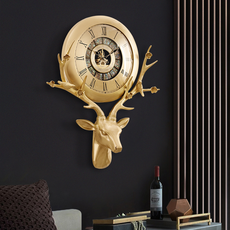 Pure brass European-style deer head clock decorative wall wall clock atmospheric fashion living room light luxury modern home creative hanging watch