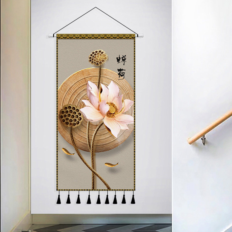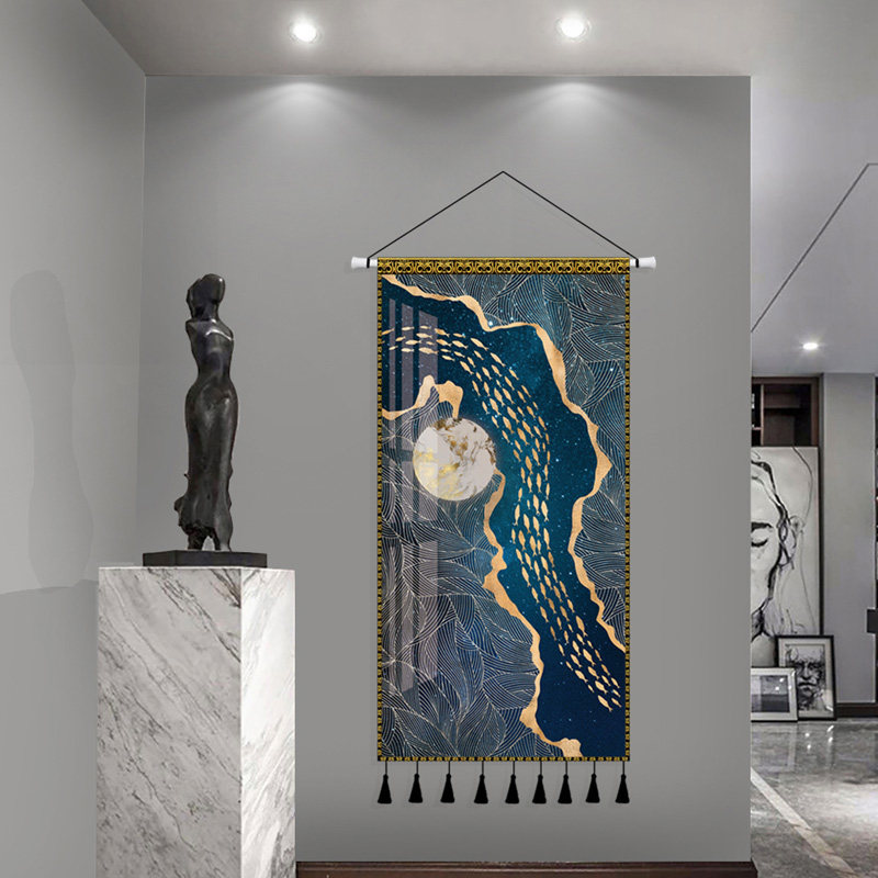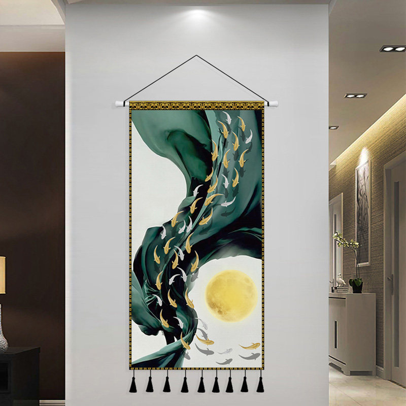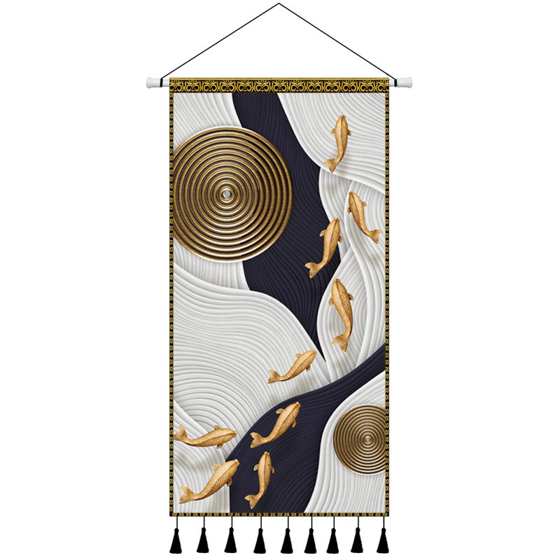 Light luxury modern nine fish figure cloth art hanging painting Chinese style entry porch decoration tapestry living room cloth painting background wall hanging cloth