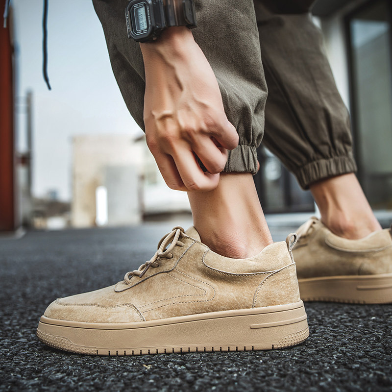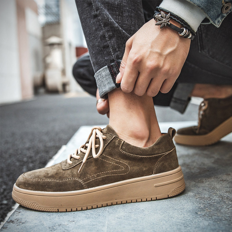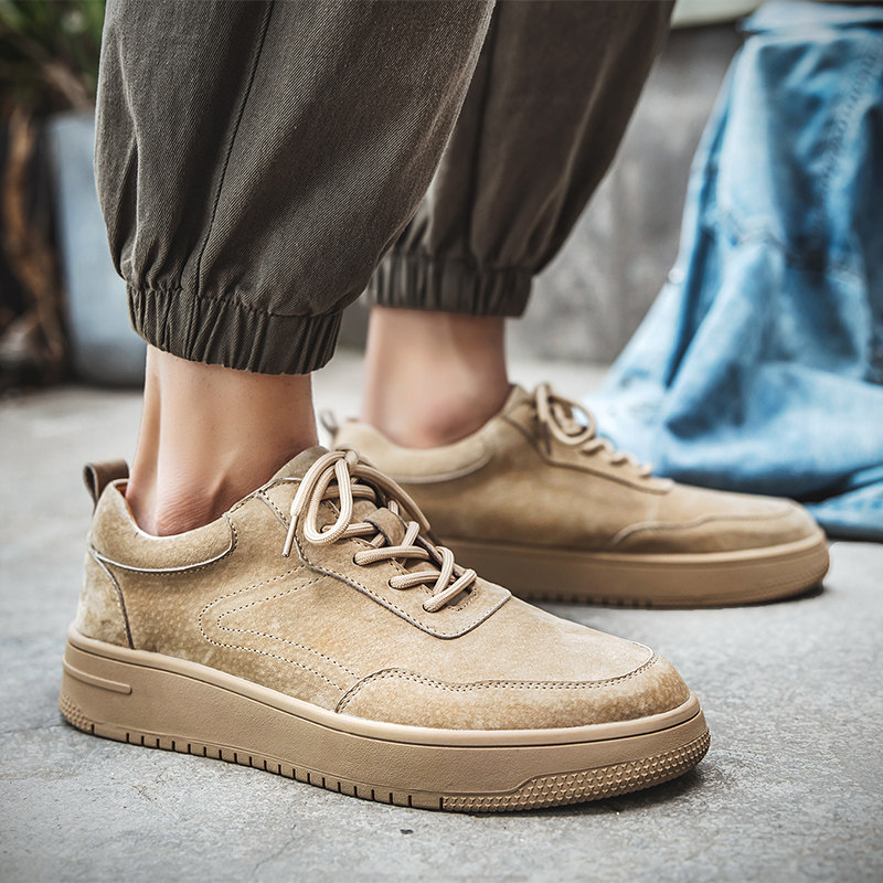 2022 new men's shoes low-top Korean casual leather shoes summer leather soft bottom suede thick bottom tooling shoes trend