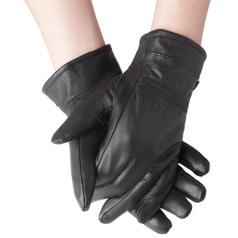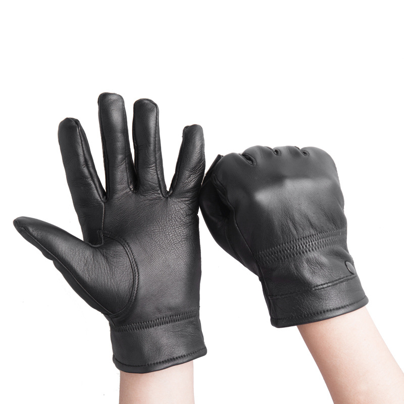 Genuine leather gloves men's winter warm plus velvet points cowhide men's cycling motorcycle leather gloves Haining origin