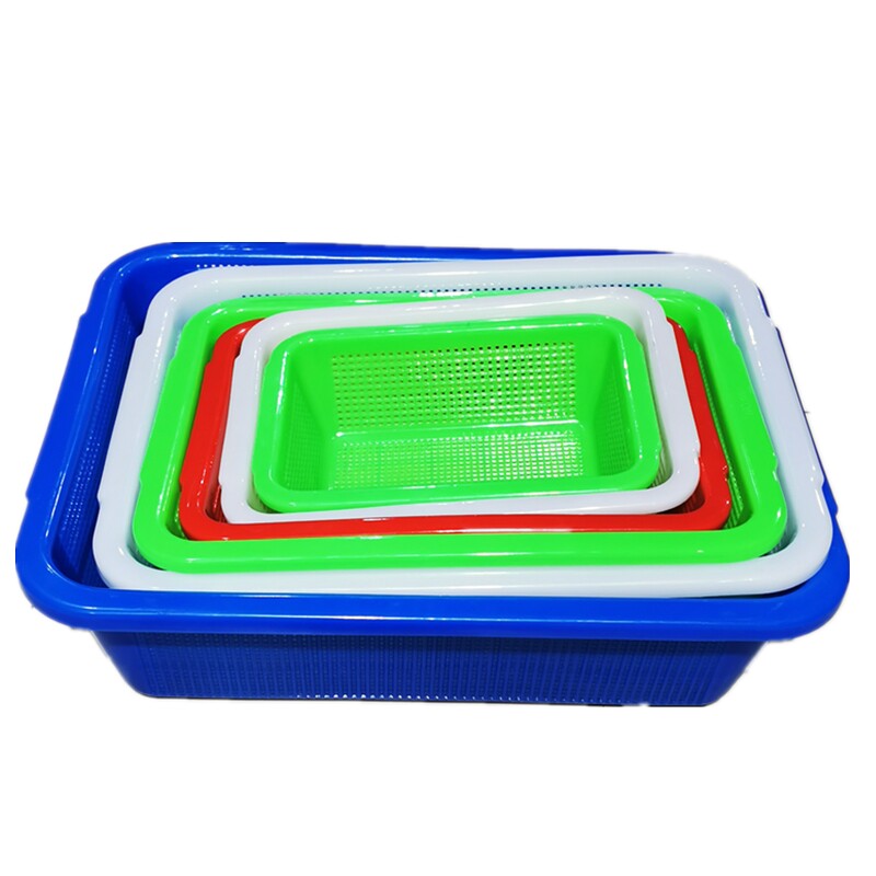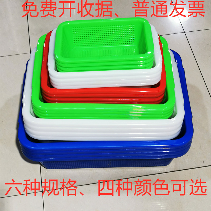 Plastic basket, basket, rice washing basket, rectangular thickened kitchen household storage basket, encrypted small hole drain basket