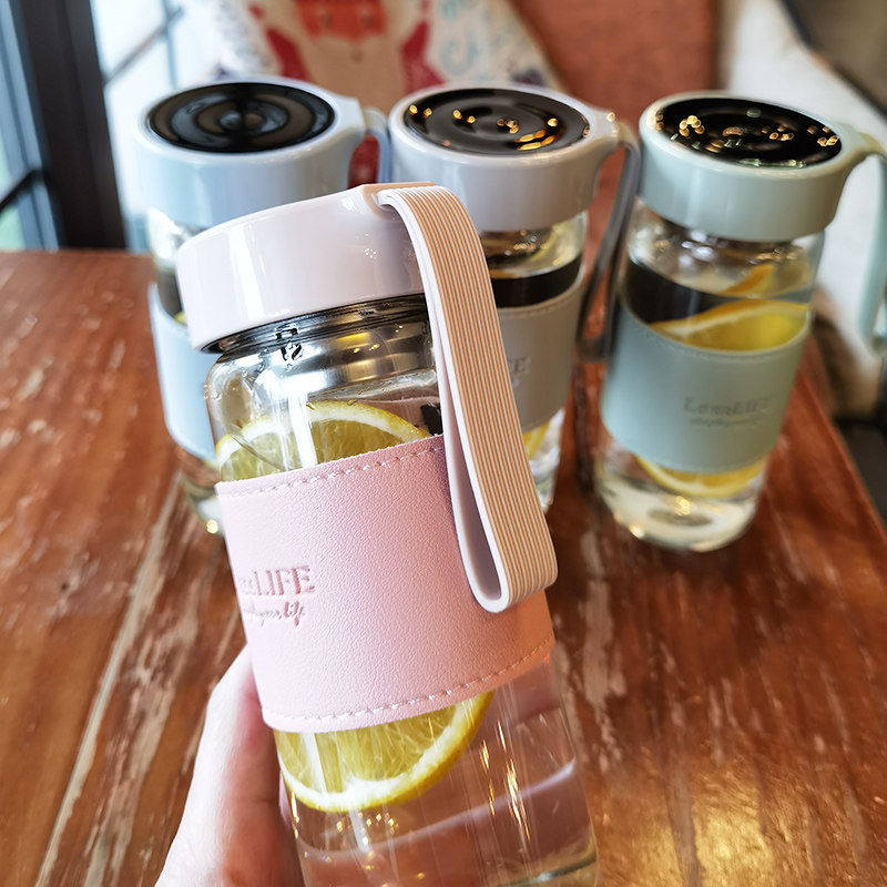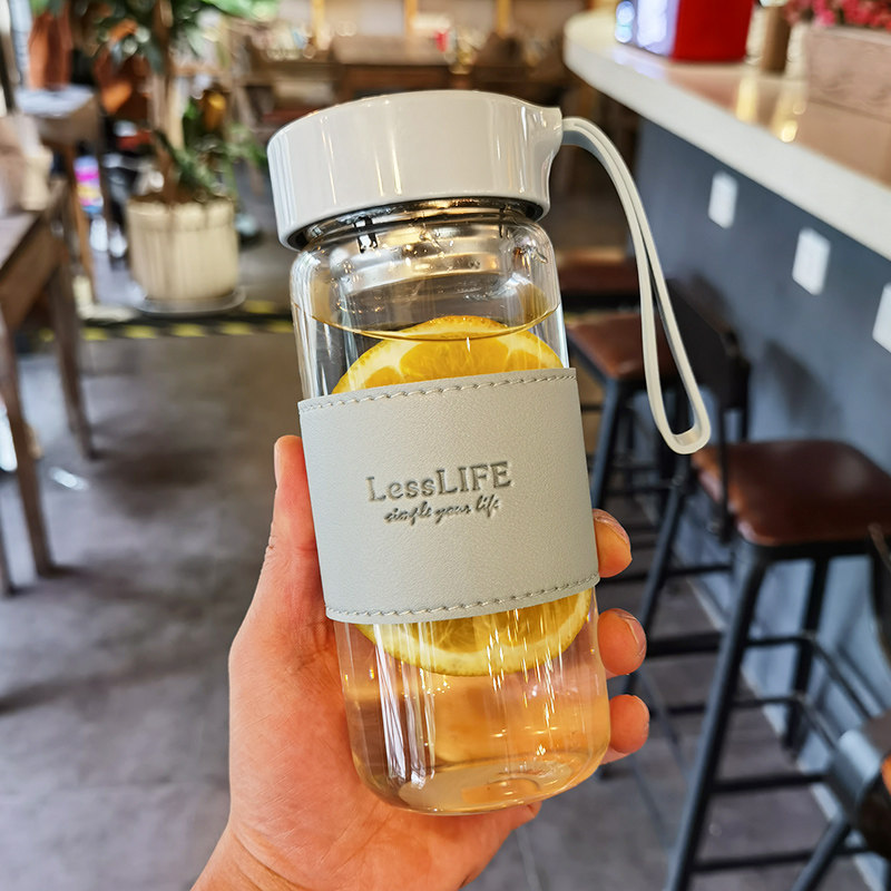 High borosilicate water cup with rope rope for male and female students simple portable tea bubble tea home office heat-resistant glass cup