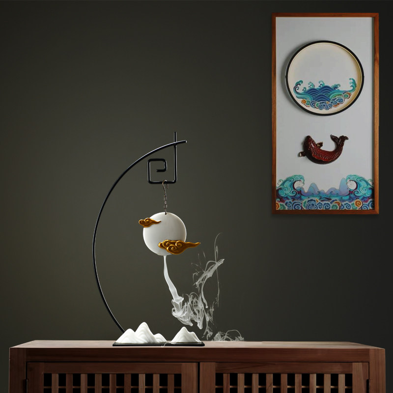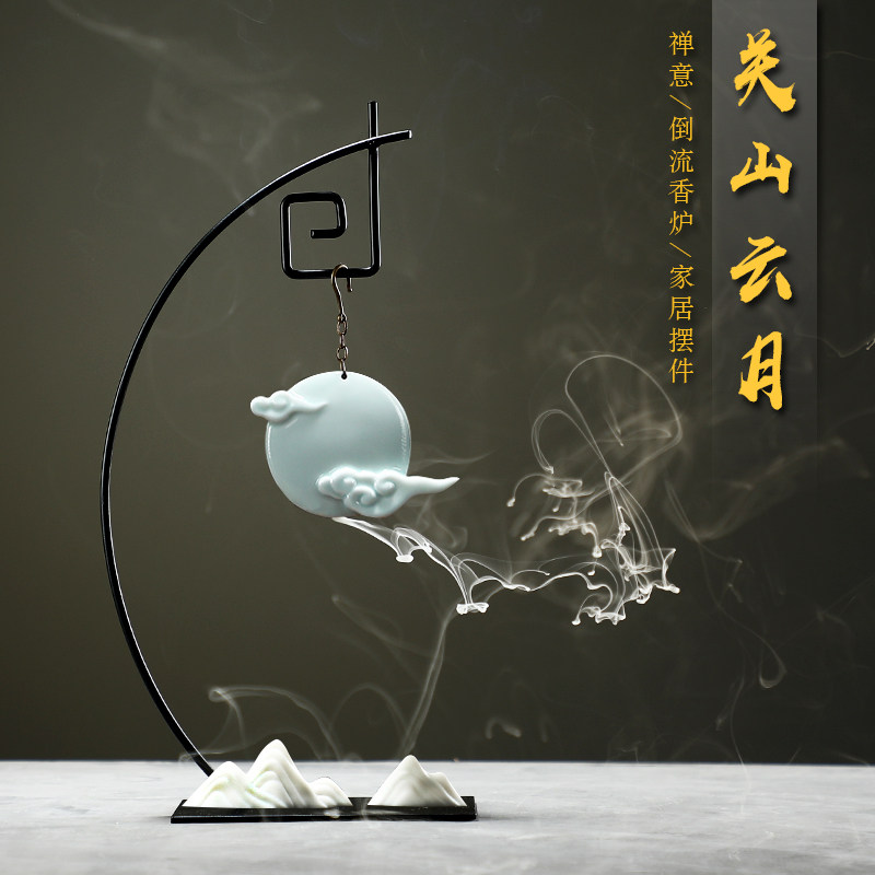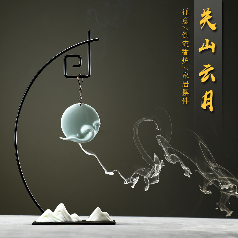 Ceramic backflow incense burner incense household sandalwood agarwood moon incense seat indoor large creative hanging incense burner ornaments
