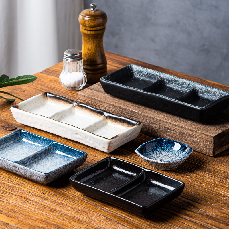 Barbecue barbecue seasoning plate dipping plate small plate sauce plate Japanese-style seasoning plate multi-grid three-grid plate dipping plate