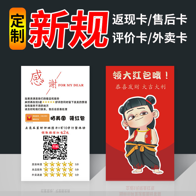 Weiyang after-sales service card A lot of Taobao Tmall five-star red envelope cashback volume Meituan hungry delivery photo card Review gift good praise price card Peace of mind Thank you letter Custom printing
