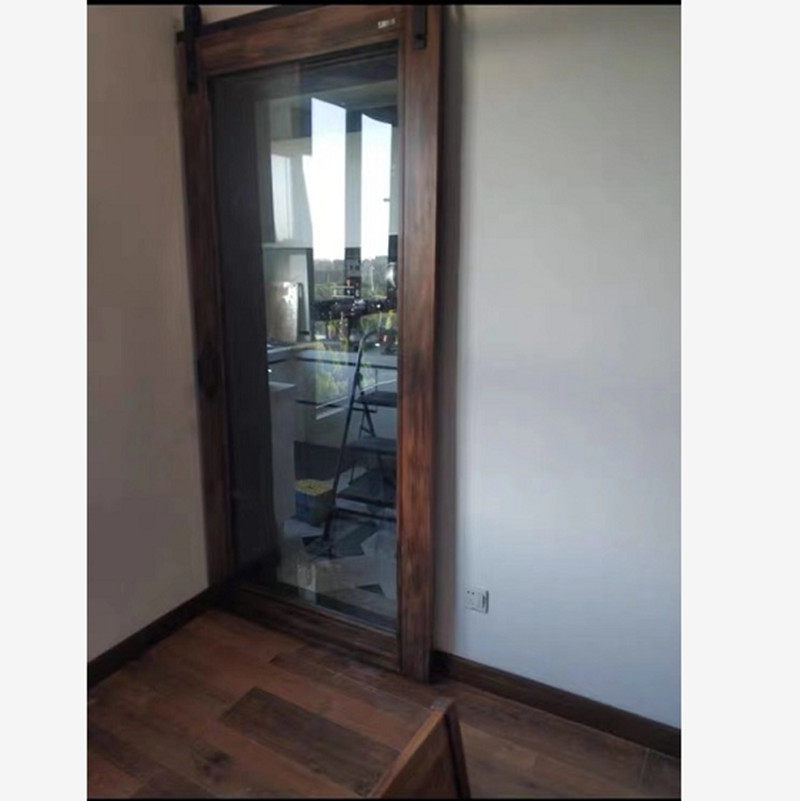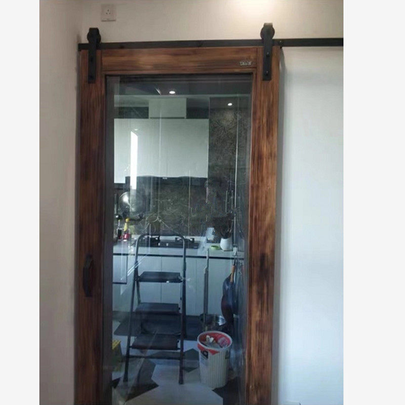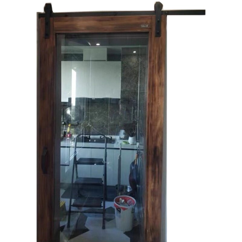 Nordic Solid Wood Barn Door Makeup room Kitchen Hanging Wheel Blackboard Mirror Door Glass Door push-pull solid wood mobile door customization