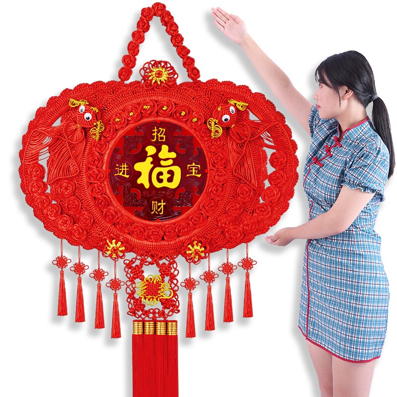Peach wood China knot living room upscale fu characters New Chinese New Year decoration hanging decoration wall hanging decoration large number Qiao relocating to new Gühsuguan