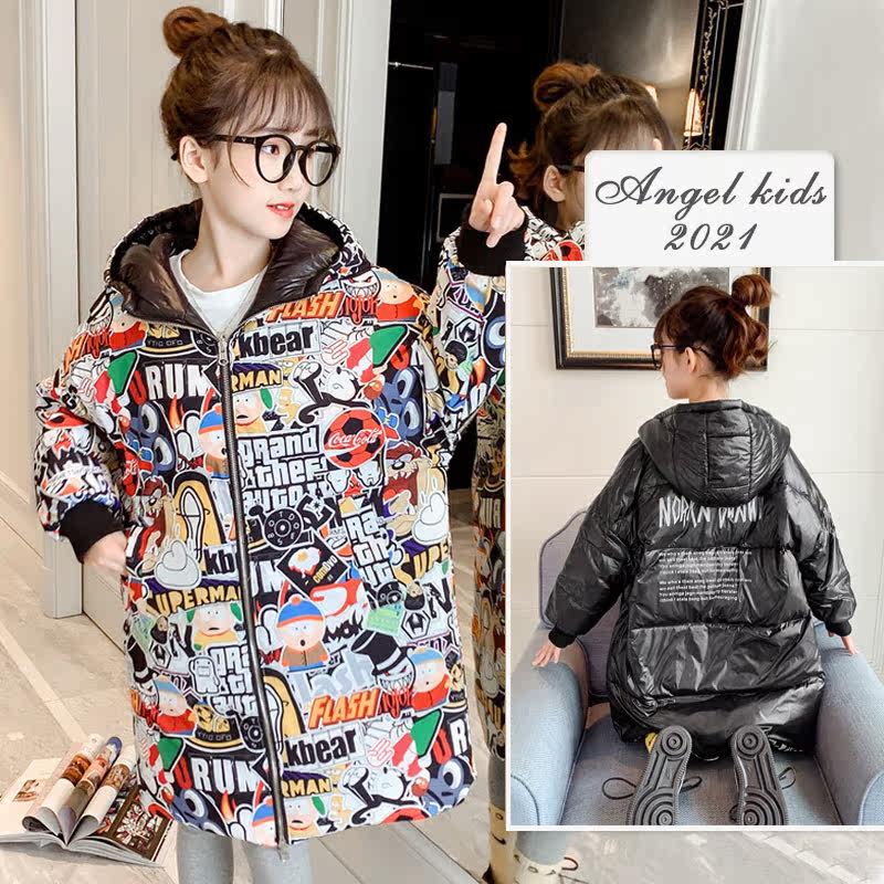 Girl's down clothes in cotton clothes Long version 2021 winter clothing jacket CUHK Scout 12 year old girl thickened cotton clothes