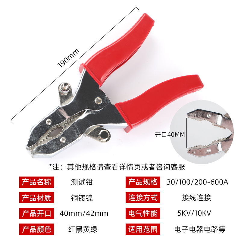 Yum Rhinoceros ZCQ type power test pliers 30A 100A 200A special alligator clip high current test