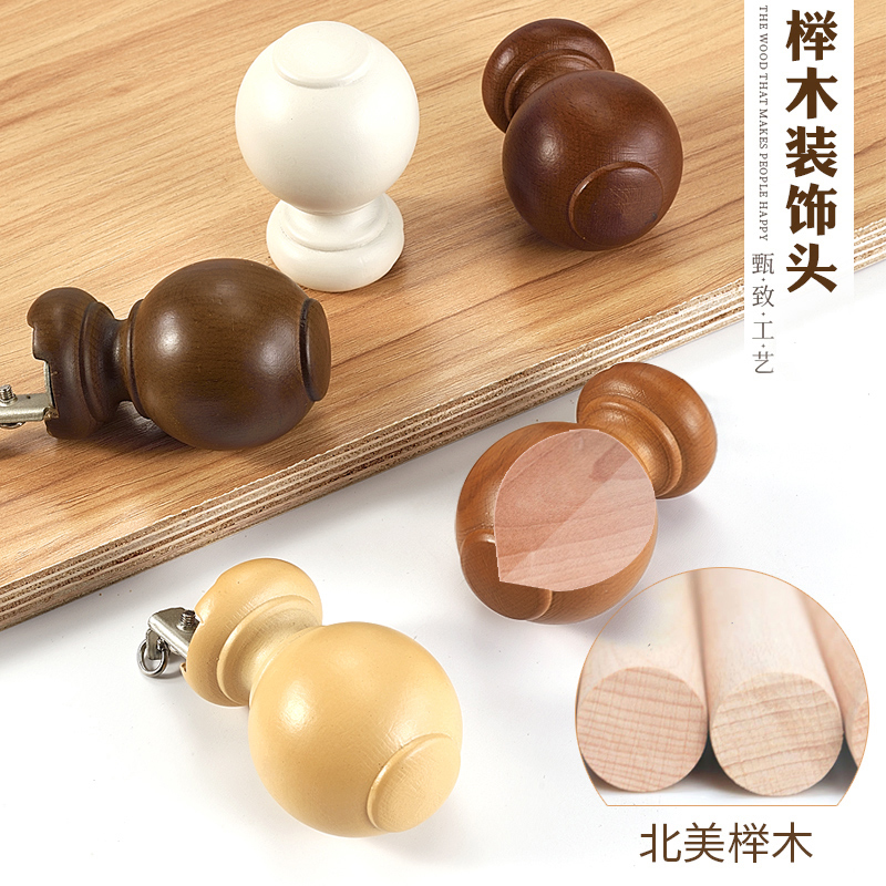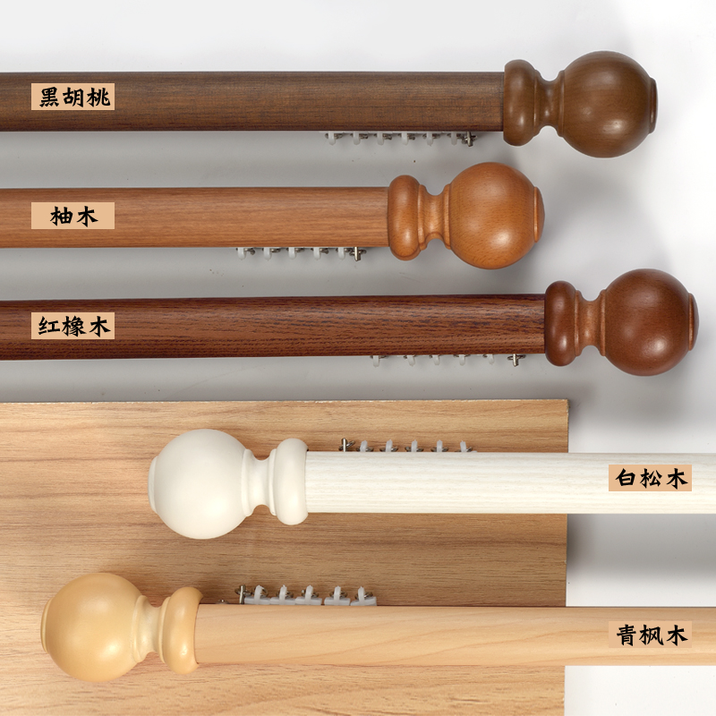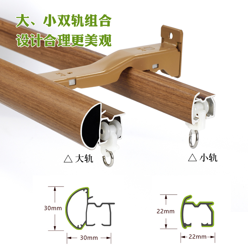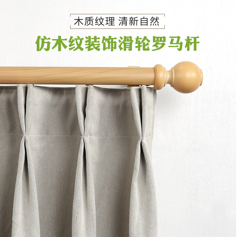 Imitation wood grain Roman rod curtain rod single rod double rod solid wood head mute aluminum alloy top-mounted side-mounted perforated Roman rod