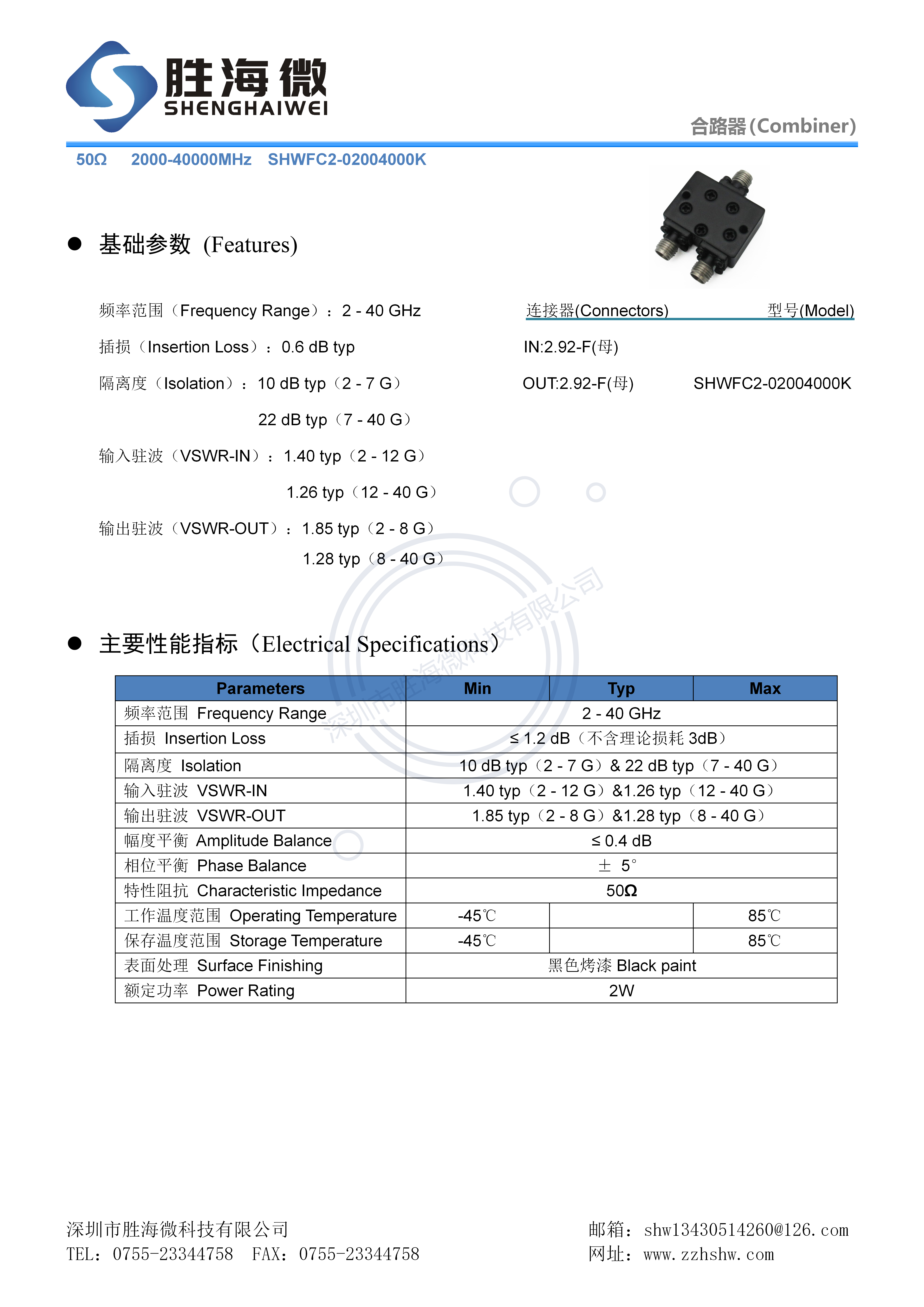 SHW 2000-40000MHz 2-40GHz 2 92mm 2W Radio Frequency Microwave coaxial two-in-one mixer