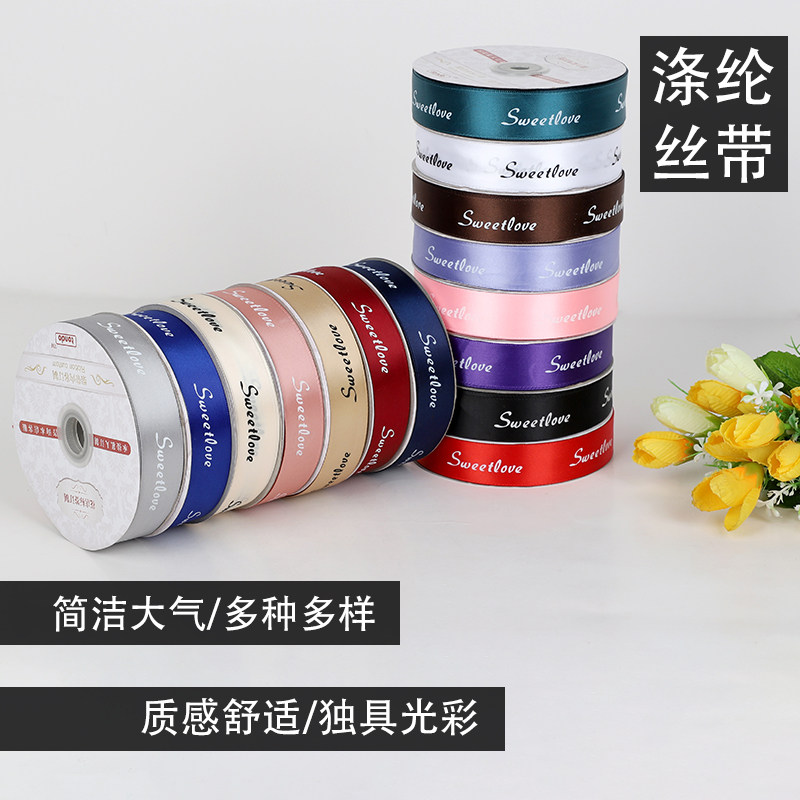 Small flower sweetlove 2 5CM ribbon new flower packaging material silk band printed in English color ribbon
