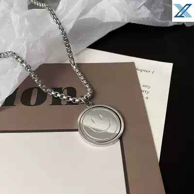 Titanium steel smiley face on both sides of the necklace pendant can be turned over