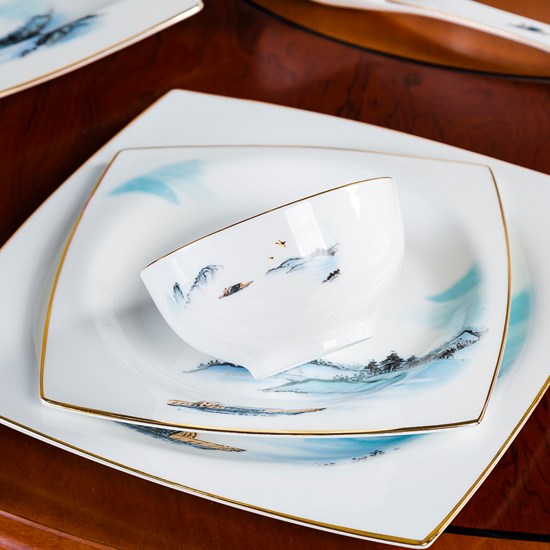Chinese hotel tableware set with ceramic dish spoon custom restaurant club four pieces of bone ceramic dishes