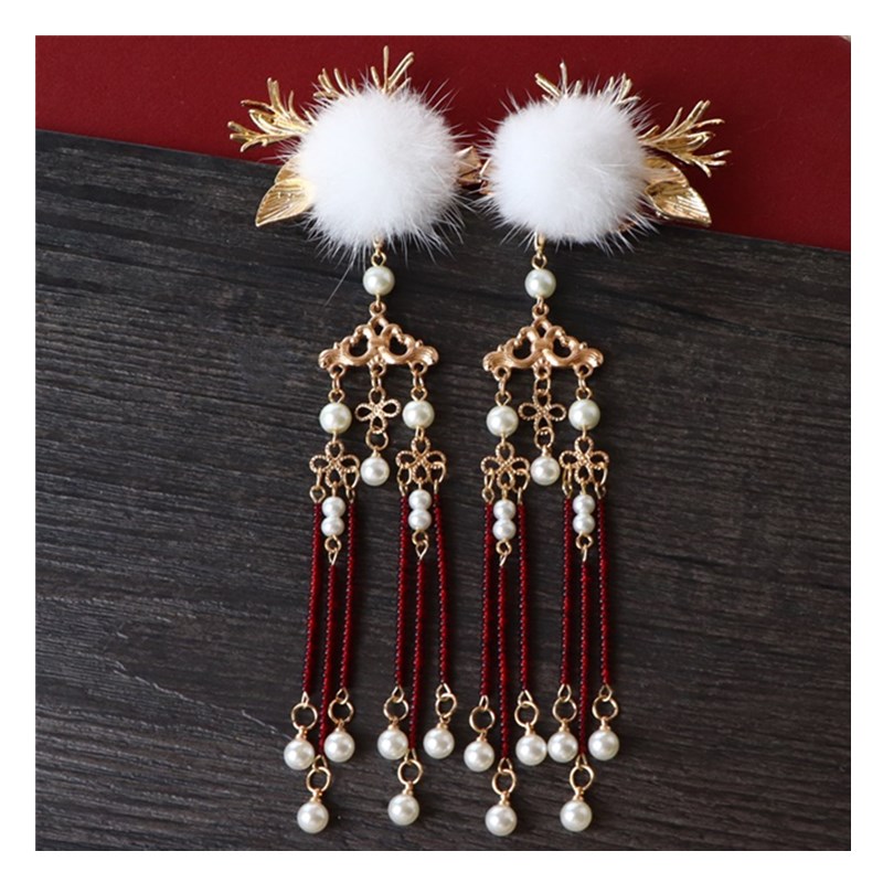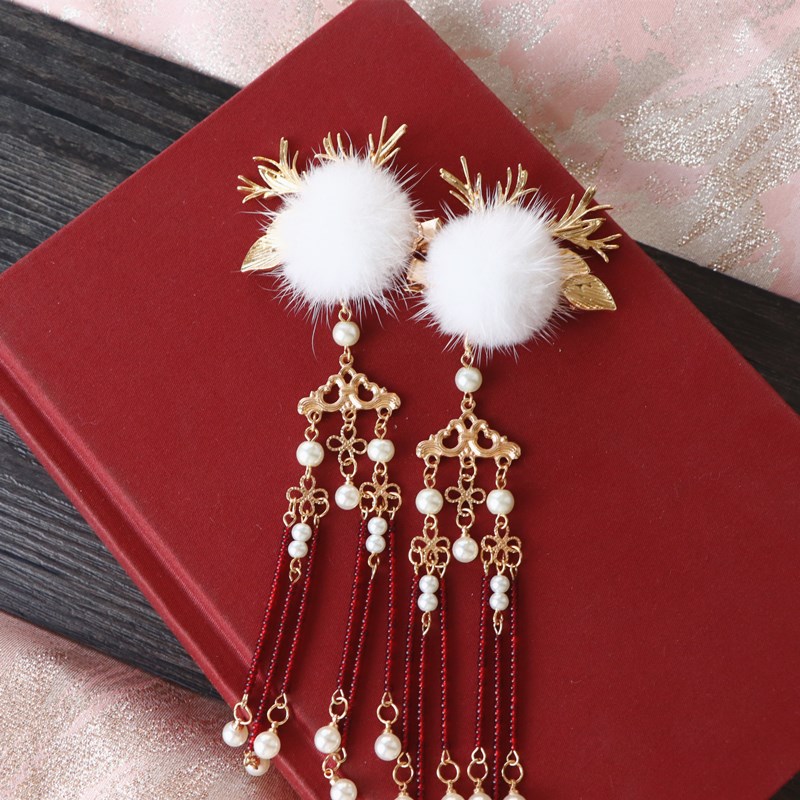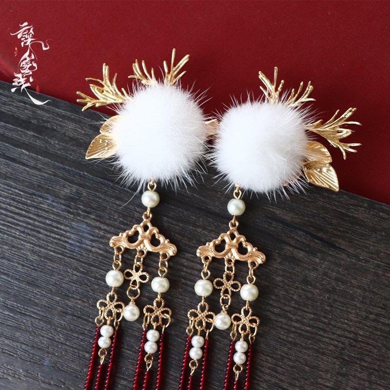 Deep clouds and shallow deer island Original Hanfu hair ball tassel antlers pair clip ancient style side clip festive headdress hair accessories