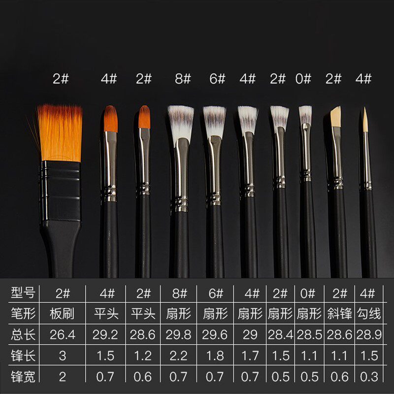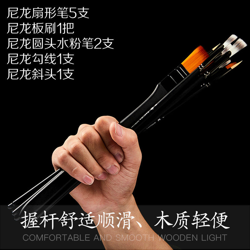 Cherry blossom fan pen Nylon gouache brush Black Knight gouache Oil painting Acrylic watercolor brush art set