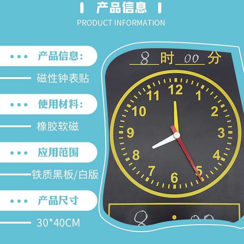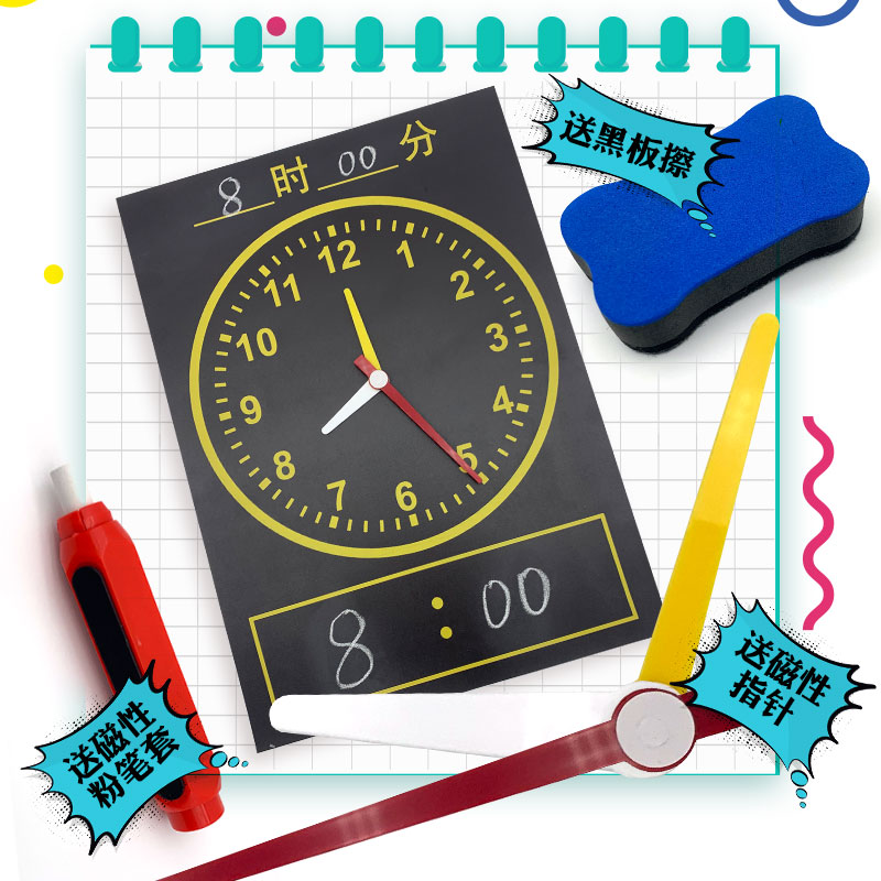 Magnetic clock model first and second grade primary school mathematics teaching aids teaching aids two needles three needles 12 teaching soft blackboard stickers