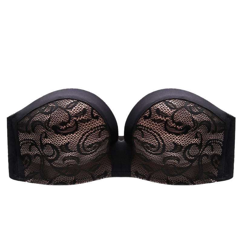 Aidi Weisha strapless underwear women's non-slip gathered invisible bra half cup seamless no steel ring adjustment to receive the breast
