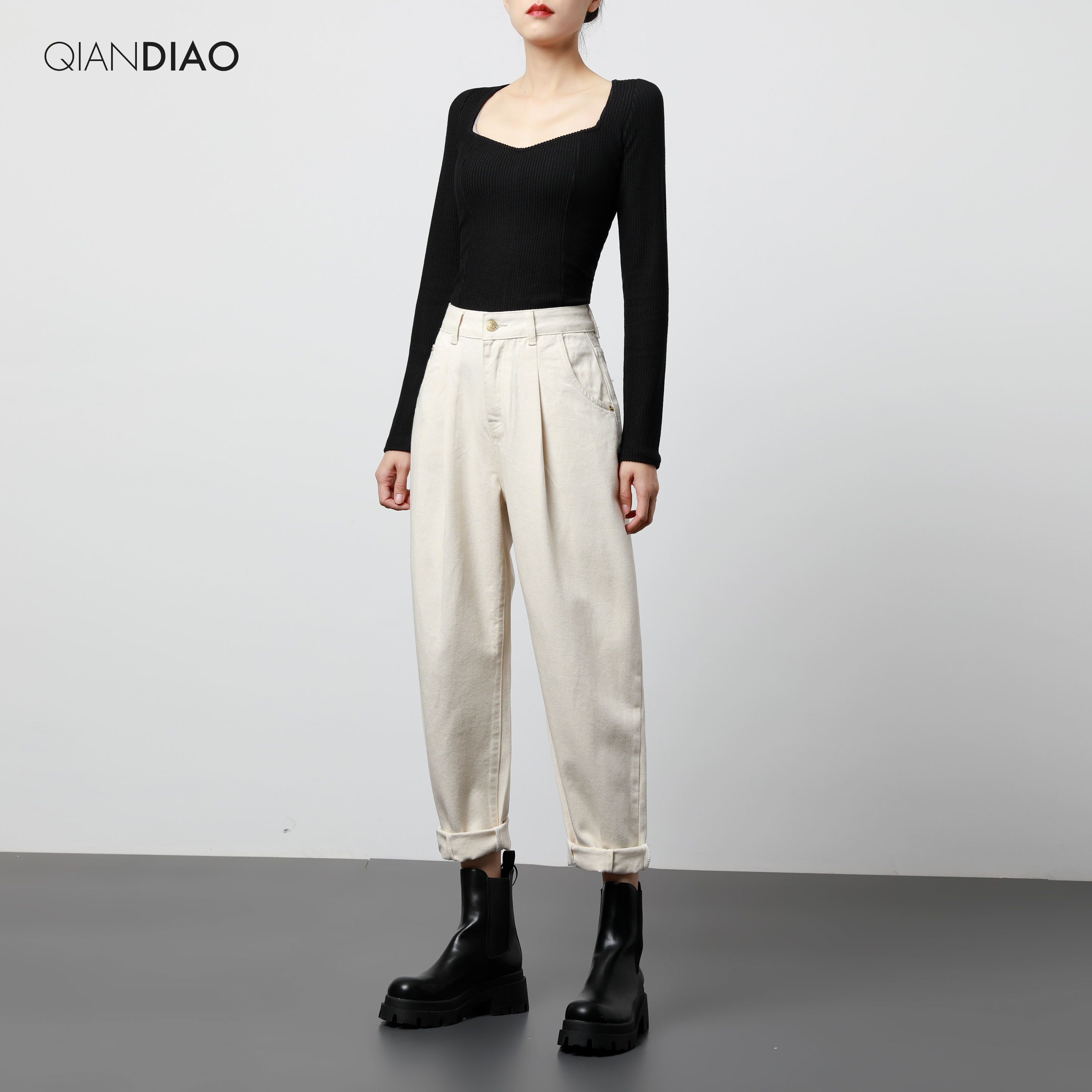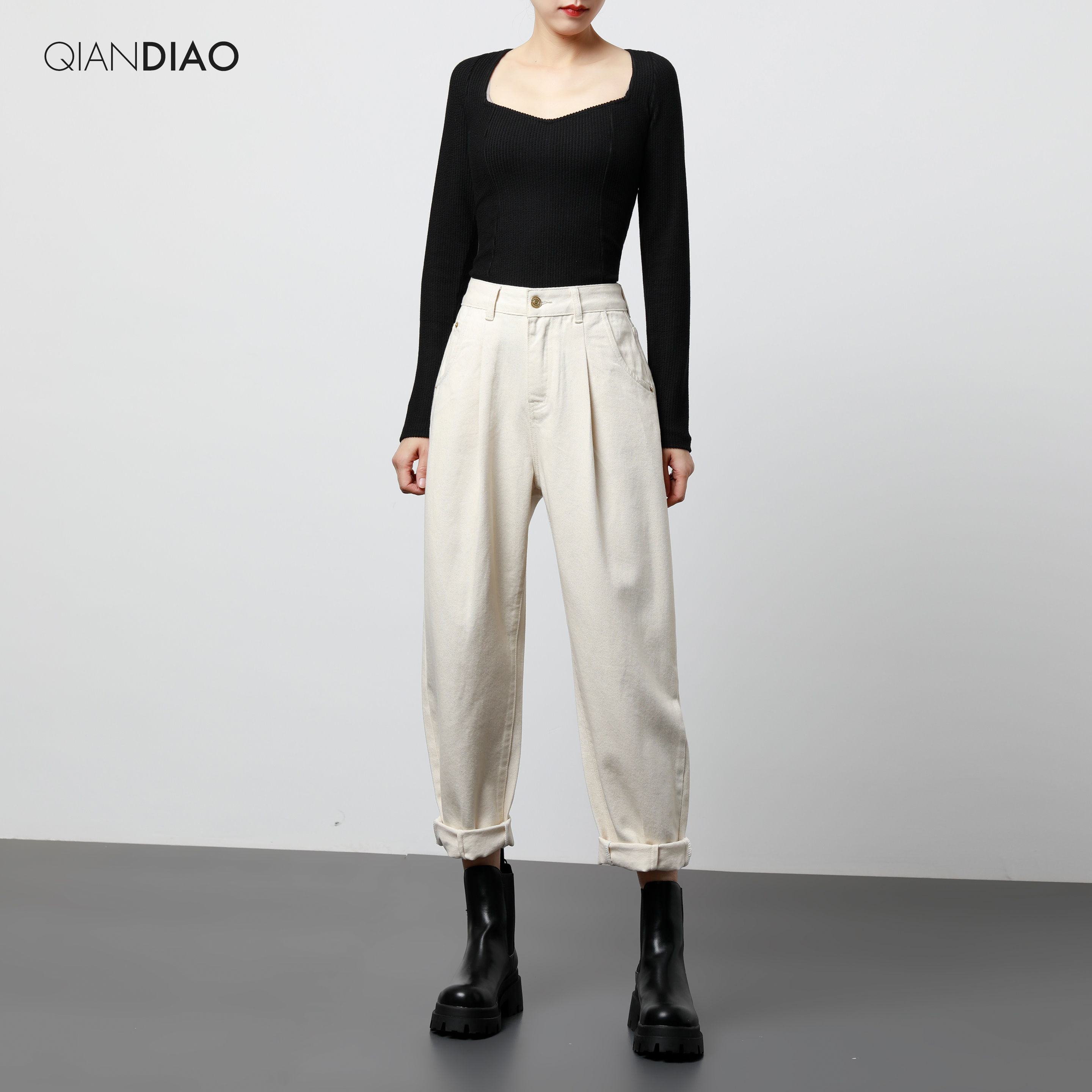 Off-white jeans women's high-rise straight pants 2021 fall new loose tapered slim Harun Daddy radish pants