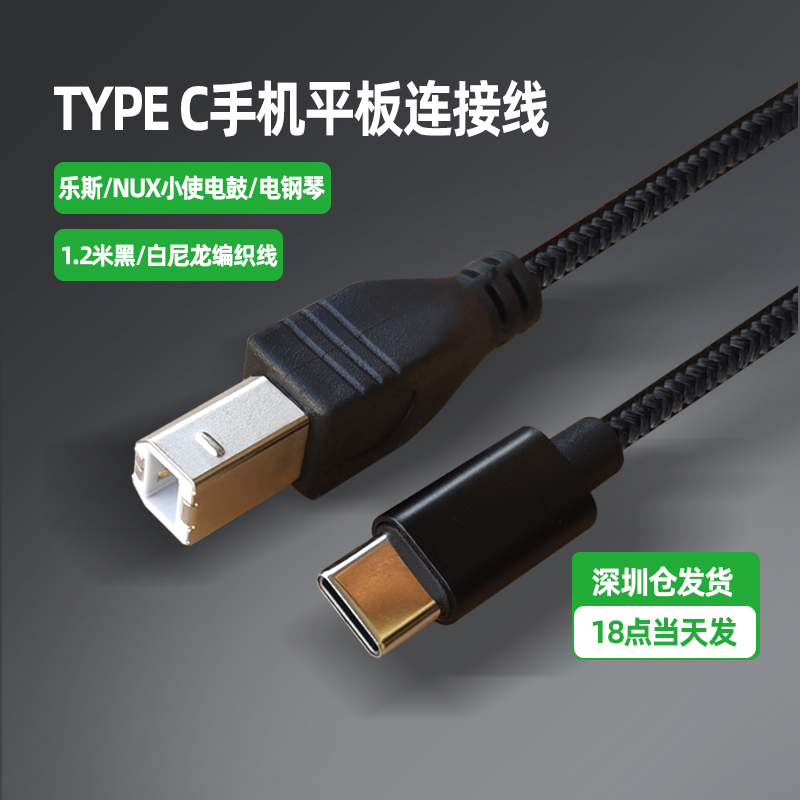 Weave the new electric piano OTG cable mobile phone TYPEC to USB square mouth Les NUX little angel electronic drum