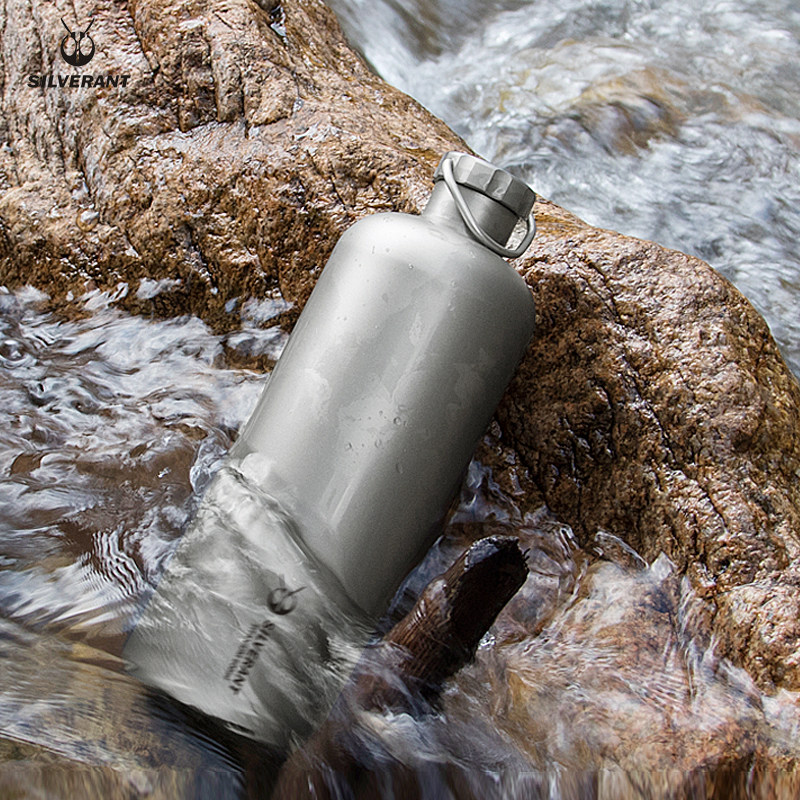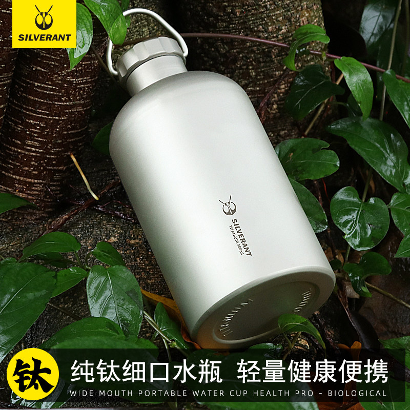 Silver Ants Pure Titanium Riding Kettle Small Mouth Titanium Pot Outdoor Portable Titanium Metal Water Bottle Mountaineering Travel Titanium Alloy Water Cup