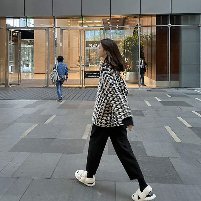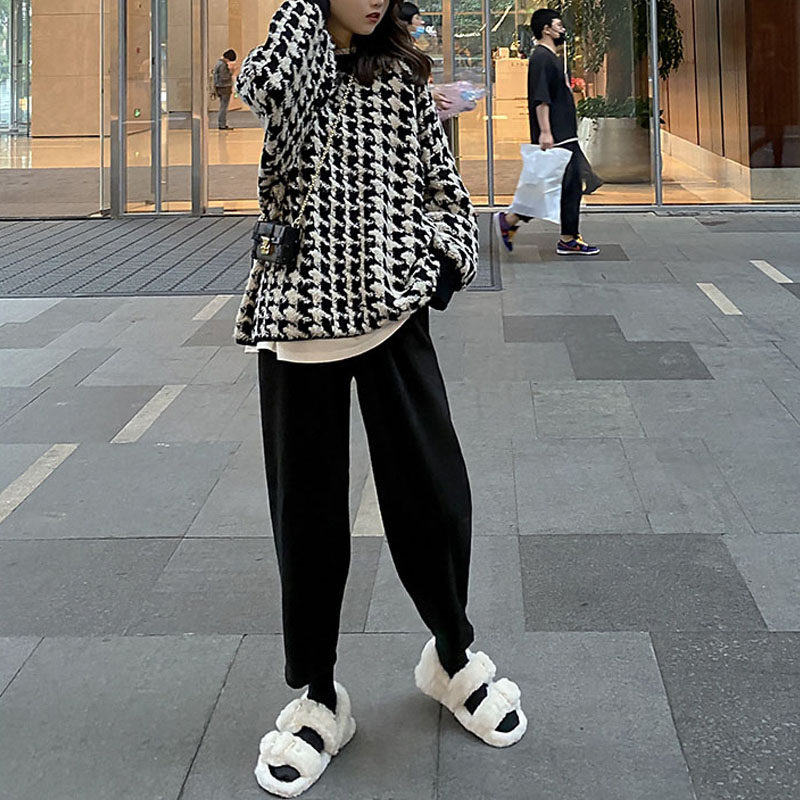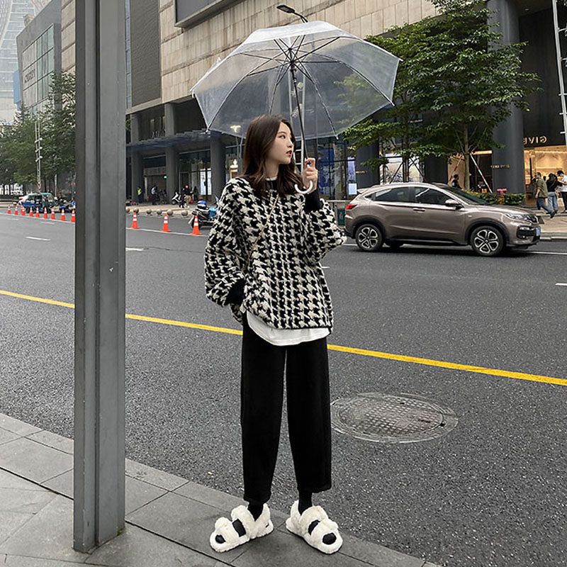2020 autumn new large size women's clothing slightly fat sister slimming and age-reducing loose meat-covering sweater Western style two-piece suit