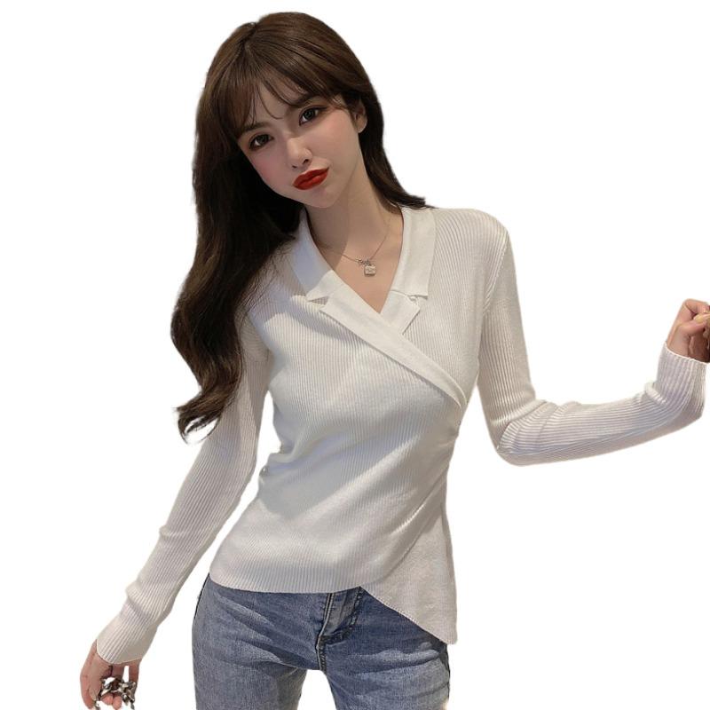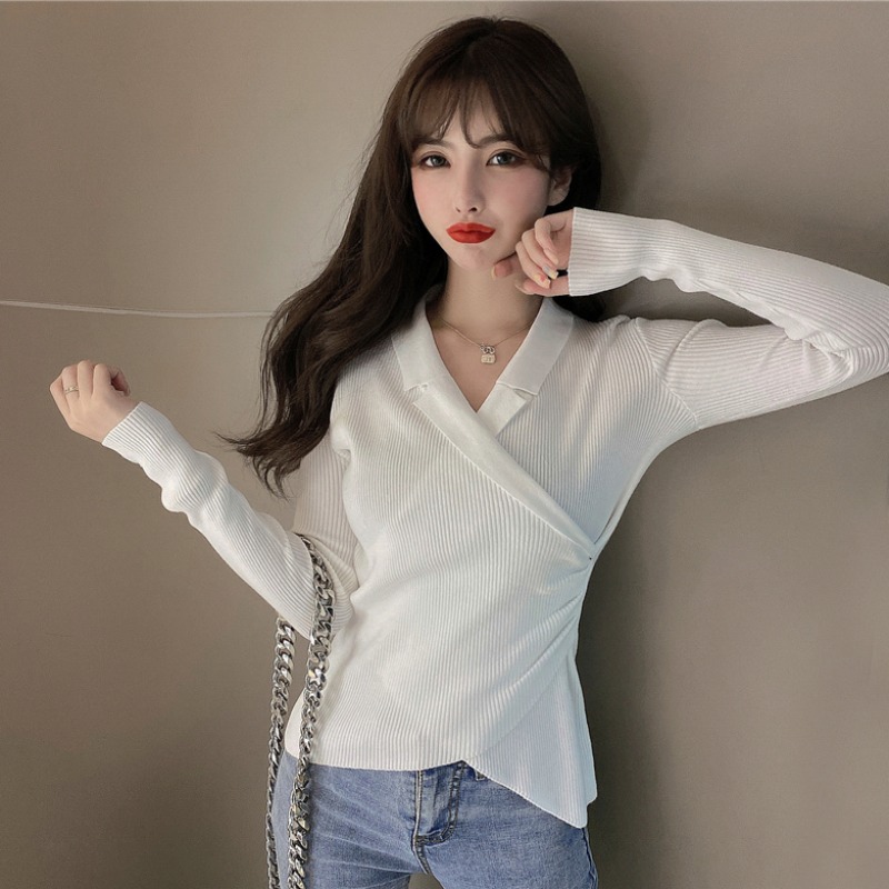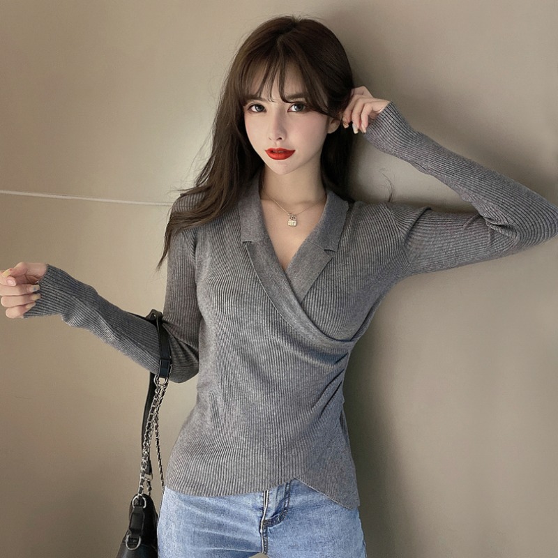 Sexy blouse 2022 Spring and Autumn V collar with a hair - shaped knitting sweater
