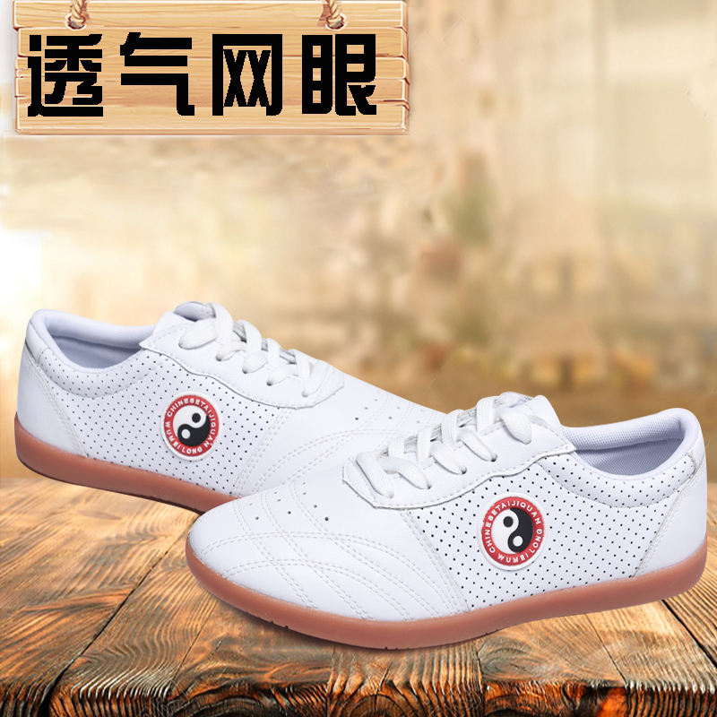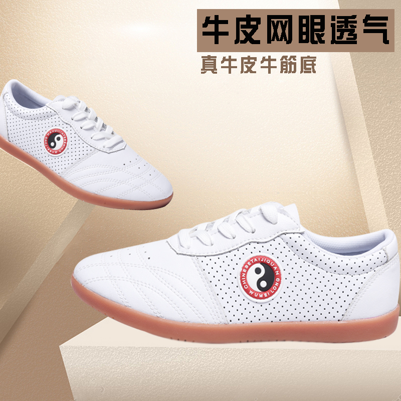 Hengshu Tai Chi Shoes Soft Cow Leather Shoes Beef Tendon Bottom Martial Arts and Men's Practicing Shoe Group Performance Tai Chi Shoes Summer Style breathable