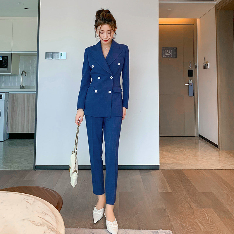 European station blue small suit suit female spring and autumn high-end big brand popular slim ladies suit two-piece new style
