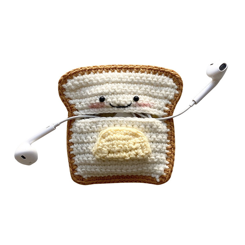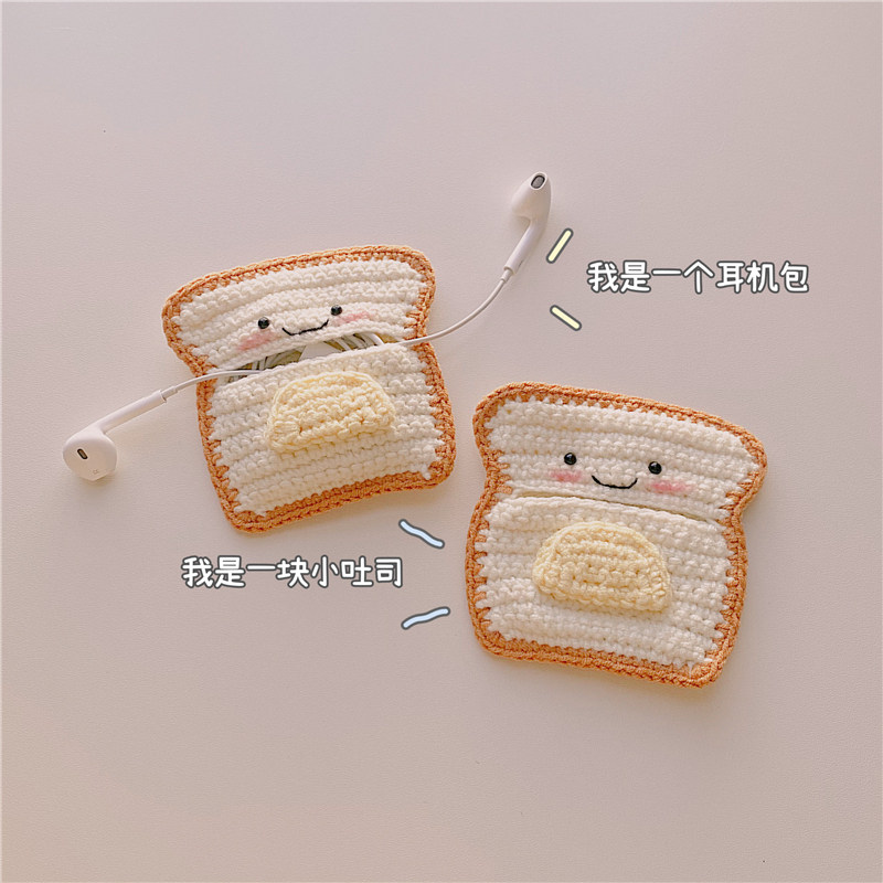 Warm Xia Ins Wind Bull Oil Toast APPLY APPLE Airpods2 HUAWEI FreeBuds3Pro WIRELESS BLUETOOTH PROTECTIVE SLEEVE WIRED HEADPHONE COVER CONTAINING BAG UNIVERSAL KNIT CUTE WOMAN