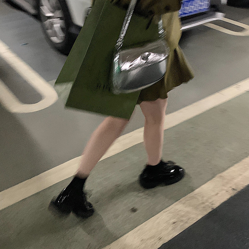 Not two oranges 2022 spring and summer new genuine leather coarse heel Inn wind small leather shoes Songcakes Thick Primer Leather Single Shoes Woman