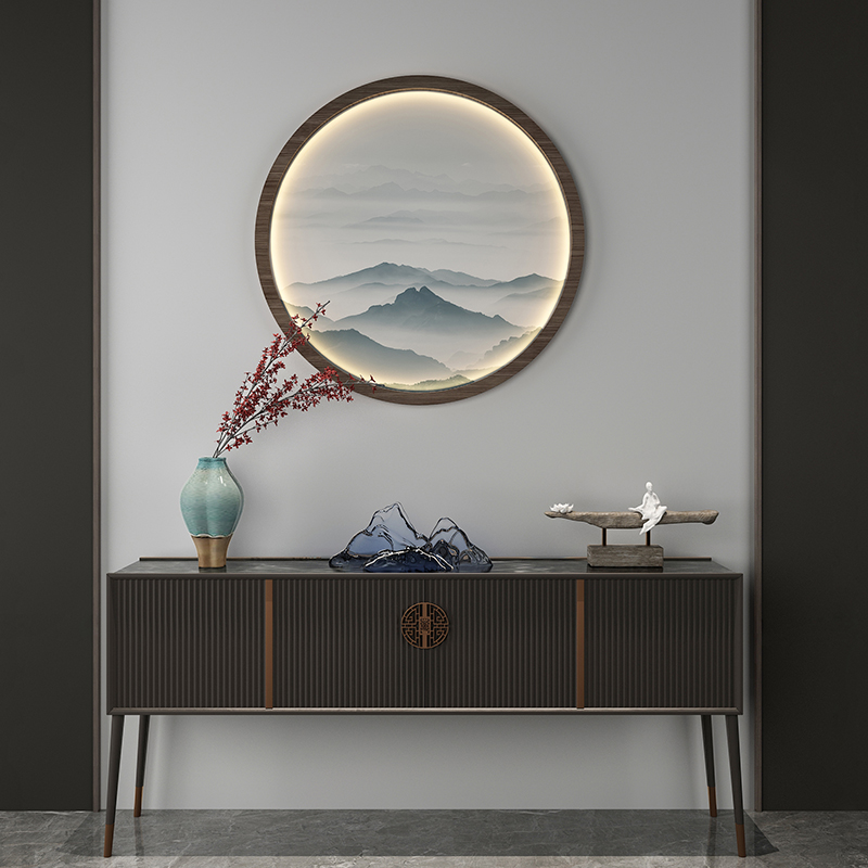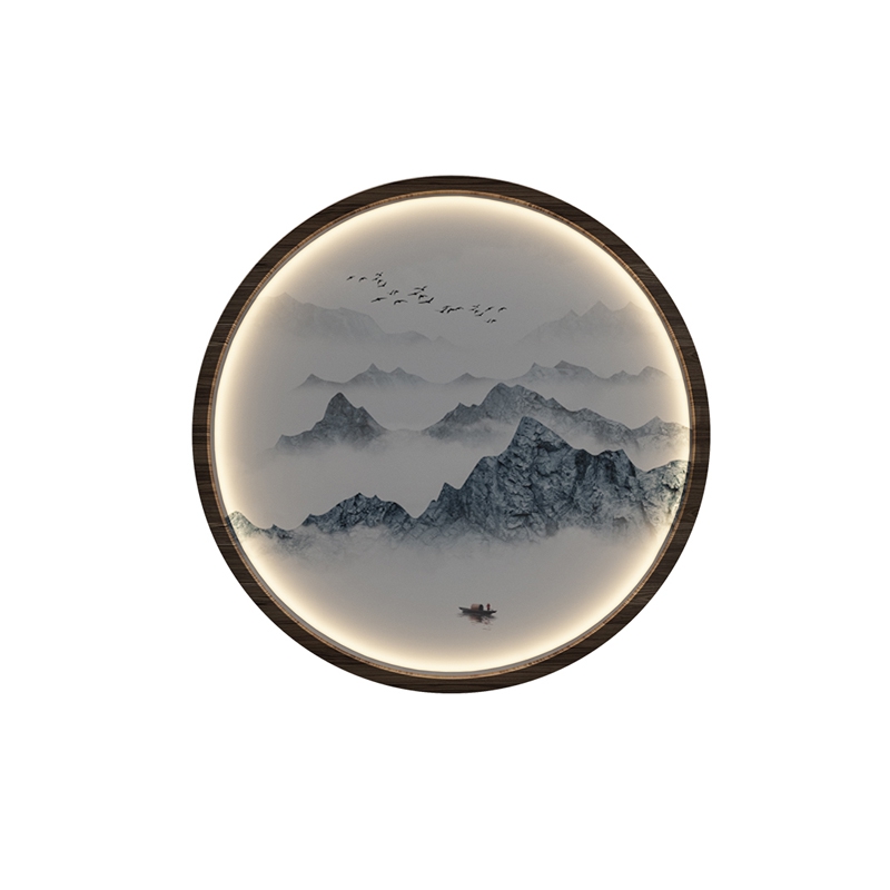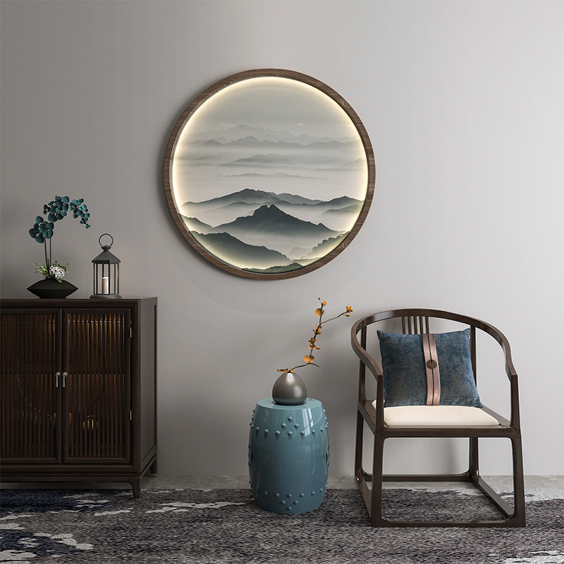 New Chinese lamp with screen Living room compartment Wall hanging screen solid wood Villa Hotel Landscape Minimalist Modern Decoration