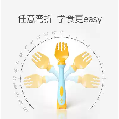 Baby learns to eat training spoon Baby elbow fork spoon set One-year-old curved non-food spoon fork Children's tableware