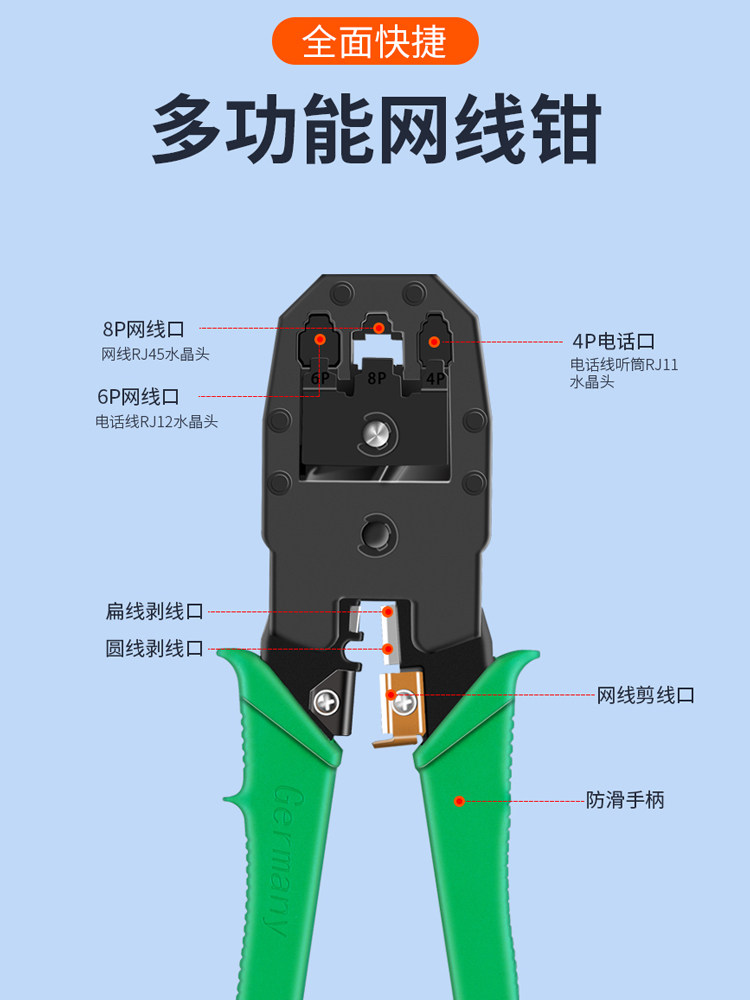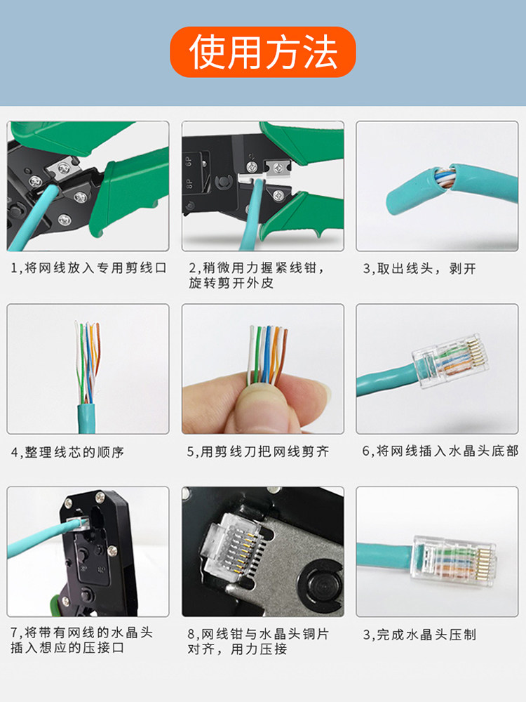 Network cable clamp set five types six types seven types of professional home multi-function connection crystal head connector network cable tester network clamp pliers tool broadband cable installation network cable tool complete set