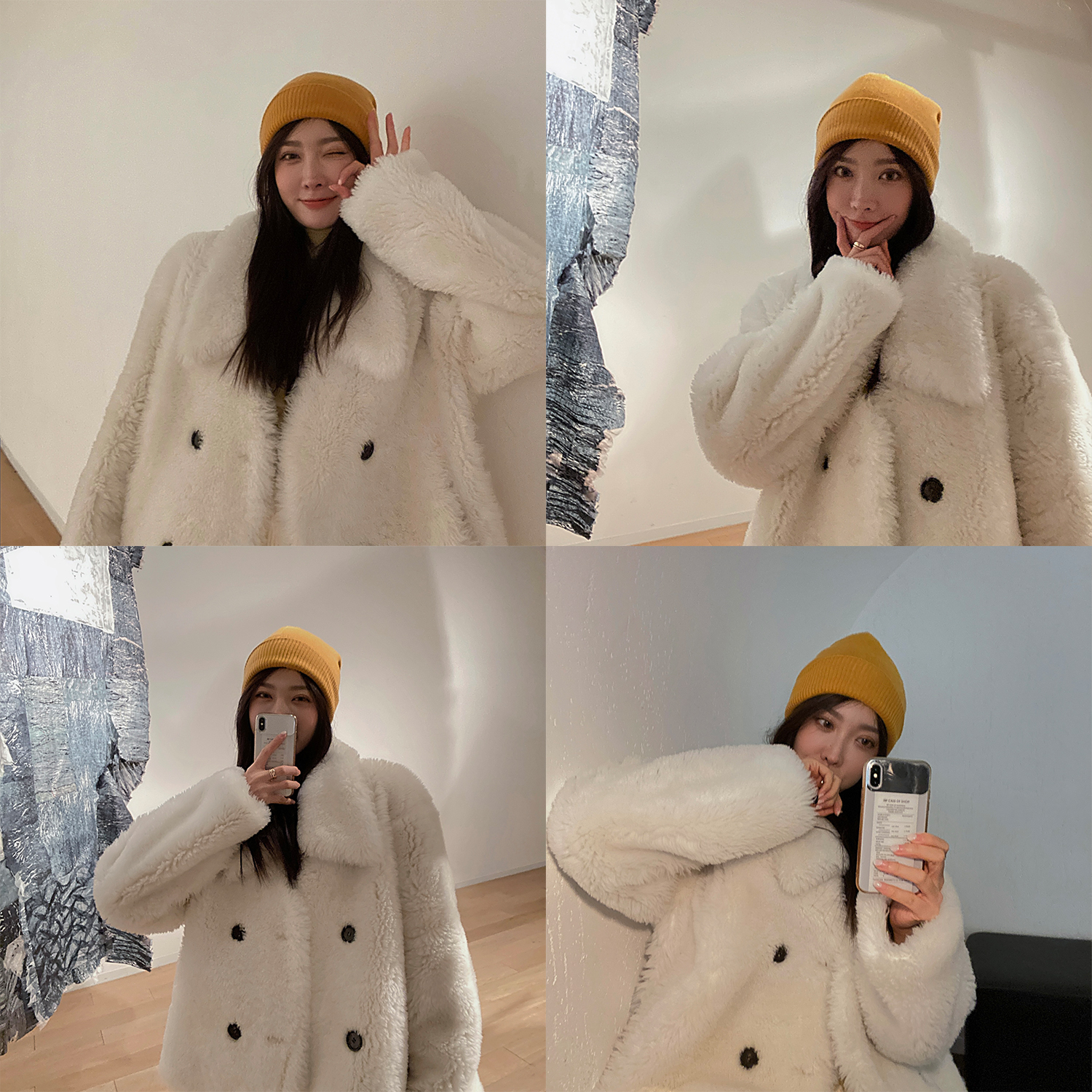 Pay Zion Show Field MVP Black Peumelinu fur integrated female square collar short style Young Leather Grass Coat Winter