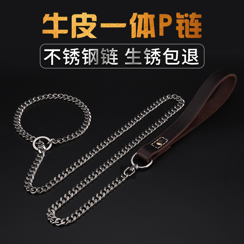 Stainless steel integrated p chain Large canine traction rope Horse dog Labrador gold wool training dog chain dog walking dog rope