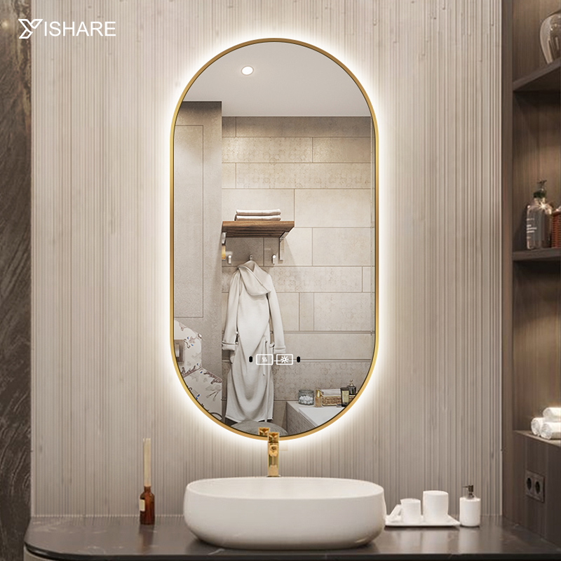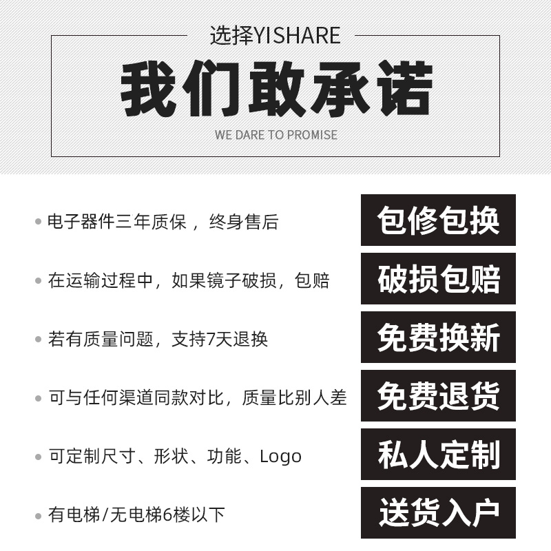Yishare smart bathroom mirror aluminum alloy frame toilet mirror with lamp led dressing mirror hanging wall-style bathroom mirror-Taobao