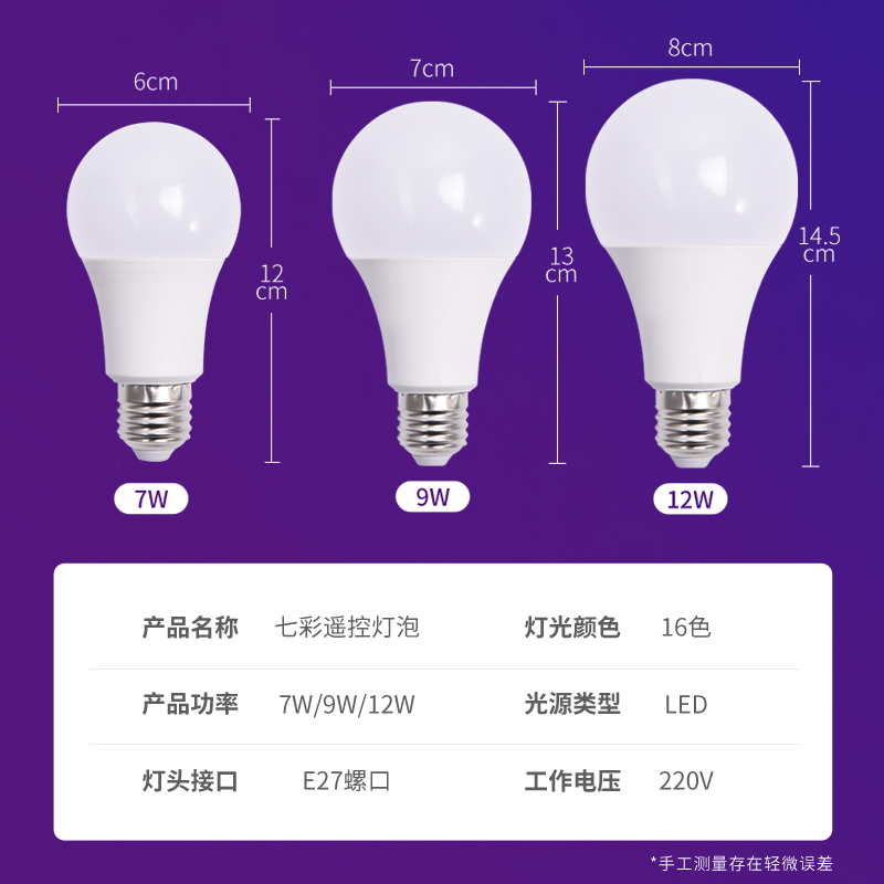 Led colored bulb discoloration remote control bulb e27 screw lipstick red orange yellow green pink white blue purple live photo tonic-Taobao