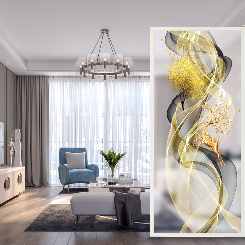 Art Glass Screen Partition Hyun Guan Aisle Background Wall Entrance Living Room Shoe Cabinet Entrance Door Modern Light Lavish Deer