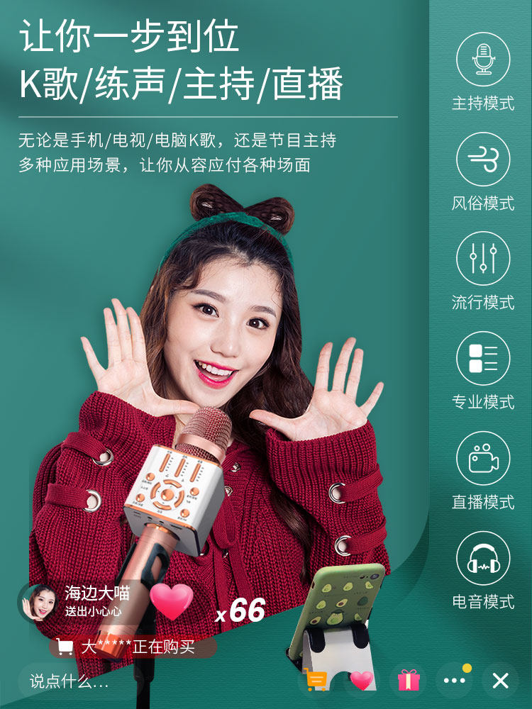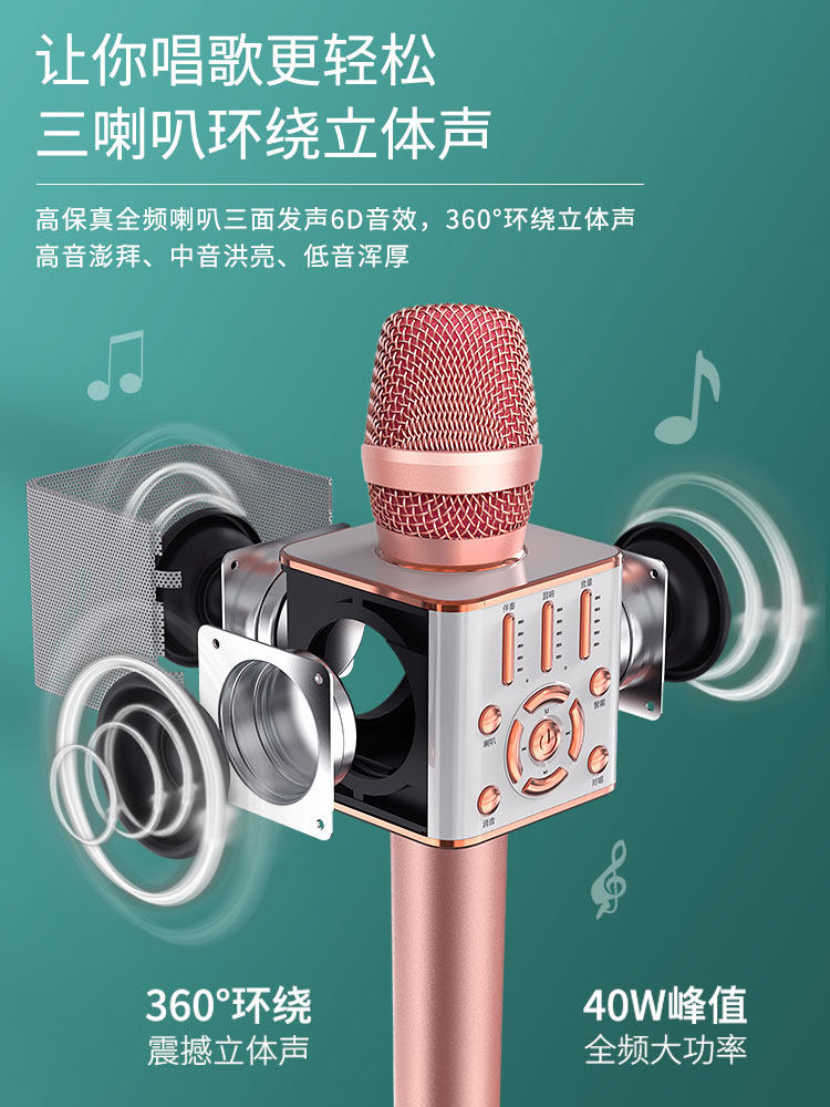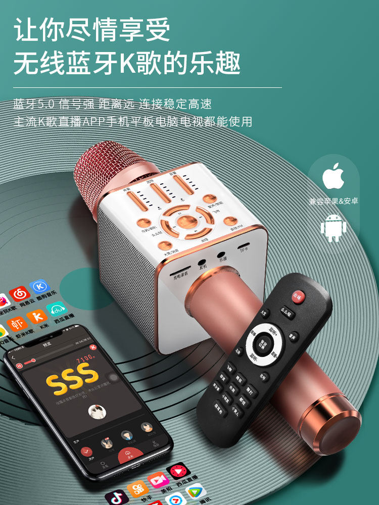 Microphone audio integrated microphone wireless bluetooth home microphone voice changer national K song artifact live sound card singing mobile phone special computer TV wheat children's family KTV general