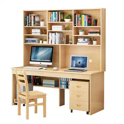 Solid wood desk bookshelf combination Household with bookcase one simple economical computer desk desk Student desk