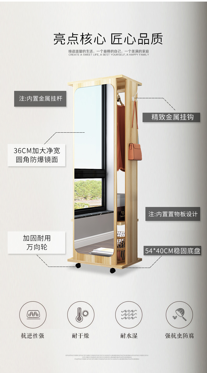 Full Body Mirror Full Body Mirror Floor Containing Swivel Rental Room Dorm Room Dorm Room Full Body Mirror Can Move Large-ins Wind