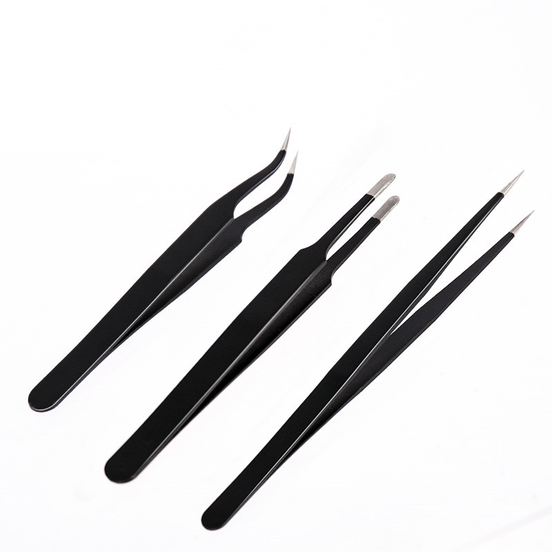 Right-hand Tool Tweezers Three Sets Stainless Steel Flat Straight Tip Elbow Pinching Clips Hardware Professional Repair DIY Manual